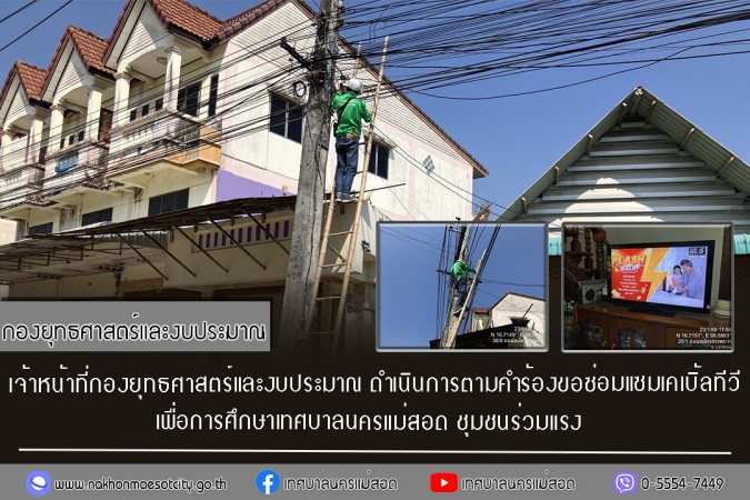เจ้าหน้าที่กองยุทธศาสตร์และงบประมาณ ดำเนินการตามคำร้องขอซ่อมแซมเคเบิ้ลทีวี ชุมชนร่วมแรง