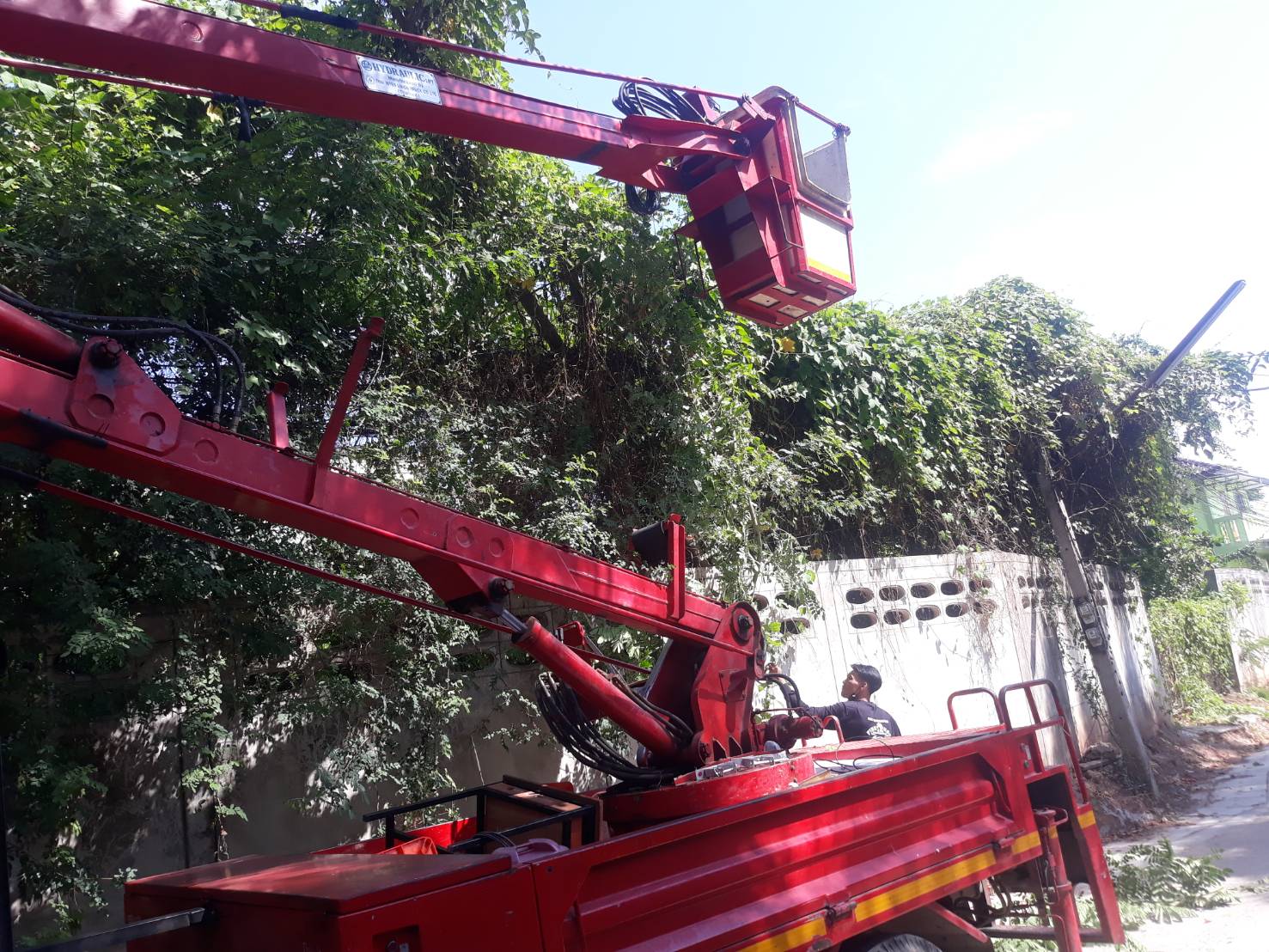 วันที่ 25 พฤษภาคม 2564 เวลา 09.00 น. ฝ่ายป้องกันฯ เทศบาลนครเเม่สอด ได้รับเเจ้งจากประชาชนให้ช่วยตัดกิ่งไม้พาดผ่านสายไฟฟ้าเเละแนวรั้ว เกรงว่าเมื่อเกิดฝนตกเกิดเหตุอันตรายได้ บริเวณชุมชนจ๊อกจอสามัคคี ตำบลเเม่สอด อำเภอแม่สอด จังหวัดตาก เมื่อได้รับเเจ้งเเล้วจึงนำรถยนต์บรรทุก 6 ล้อ พร้อมประสานขอรถกระเช้าจากกองช่าง ออกดำเนินการตัดต้นไม้ เมื่อถึงสถานที่รับเเจ้งจึงเข้าตรวจสอบพื้นที่ดังกล่าวพบว่ามีกิ่งไม้เเละเถาวัลย์ พาดผ่านสายไฟฟ้าตามที่รับเเจ้ง พนักงานดับเพลิงจึงเตรียมอุปกรณ์เเละดำเนินการตัดต้นไม้จนเเล้วเสร็จ