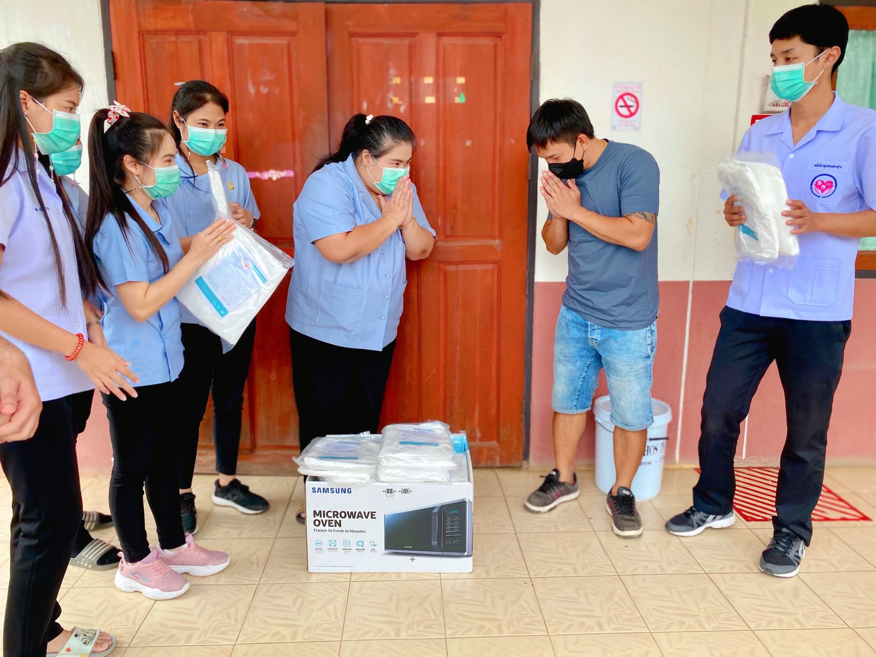 นายวิชัย เตรยาวรรณ นายกสโมสรโรตารีแม่สอด ร่วมกับ สจ.ชัย สนับสนุนสิ่งของ น้ำดื่ม ให้กับเจ้าหน้าที่คลินิกชุมชนอบอุ่นฯ