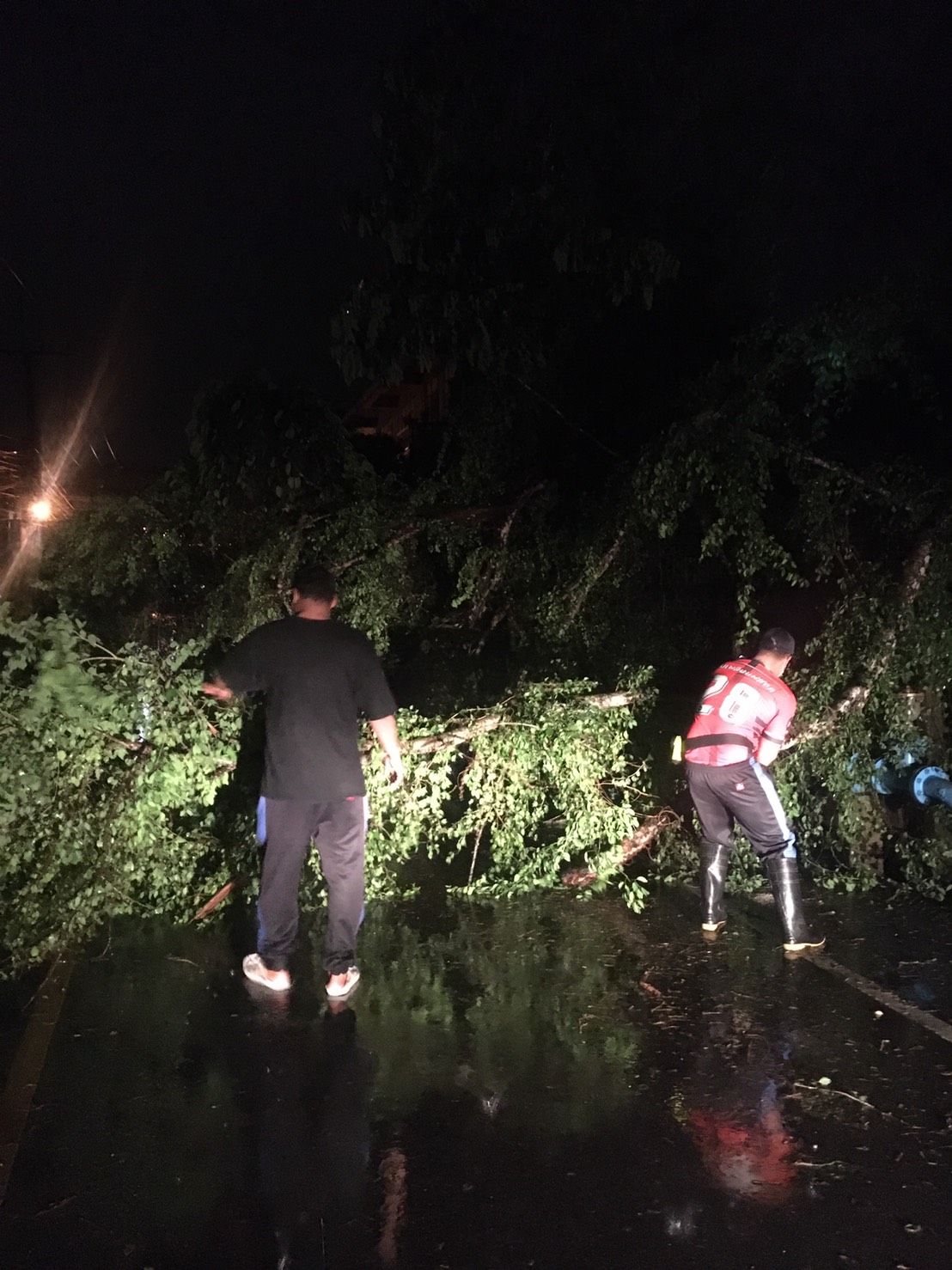 วันที่ 28 กรกฎาคม 2564 เวลา 00.15 น. คณะผู้บริหารเทศบาลนครแม่สอด สั่งการให้ฝ่ายป้องกันและบรรเทาสาธารณภัย เทศบาลนครแม่สอด ออกดำเนินการสำรวจต้นไม้ขวางถนนในชุมชนตาลเดี่ยว ตำบลแม่สอด อำเภอแม่สอด จังหวัดตาก พนักงานดับเพลิงจึงจัดเตรียมอุปกรณ์ ออกดำเนินการ เมื่อถึงสถานที่ดังกล่าวพบว่ามีต้นไม้หักโค่นขวางถนนภายในชุมชน เนื่องจากมีฝนตกหนักเเละกระเเสลมแรงจึงทำให้ต้นไม้หัก พนักงานดับเพลิงนำอุปกรณ์เข้าตัดต้นไม้จนดำเนินการเเล้วเสร็จเวลา 00.50 น. เพื่อให้ประชาชนที่สัญจรไป มา บริเวณนั้นได้ใช้ถนนได้ตามปกติ