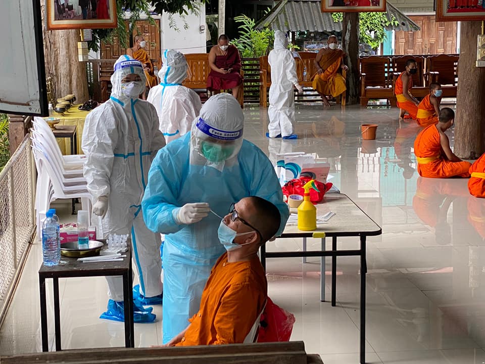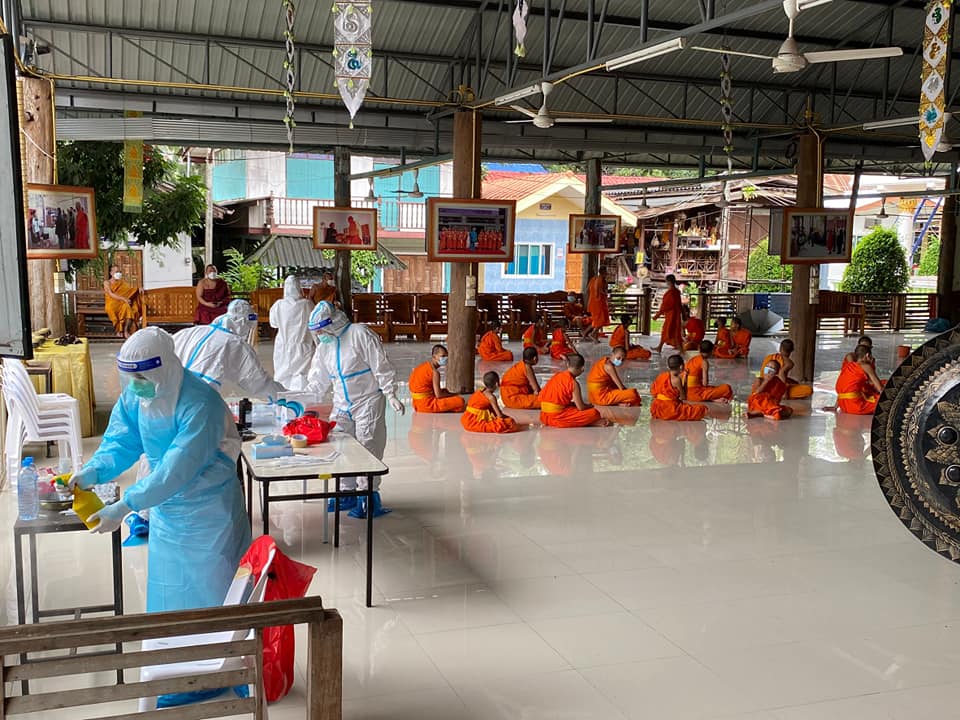 คลินิกชุมชนอบอุ่นเทศบาลนครแม่สอดลงพื้นที่สอบสวนโรคและตรวจหาเชื้อ COVID-19 ในวัดดอนแก้ว