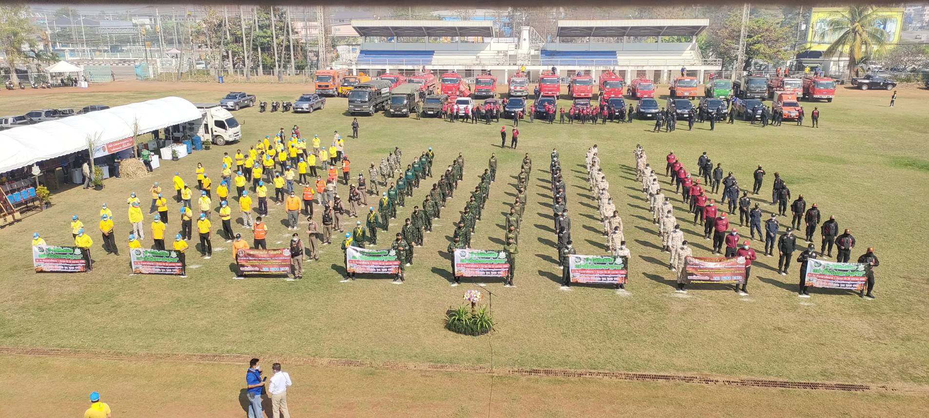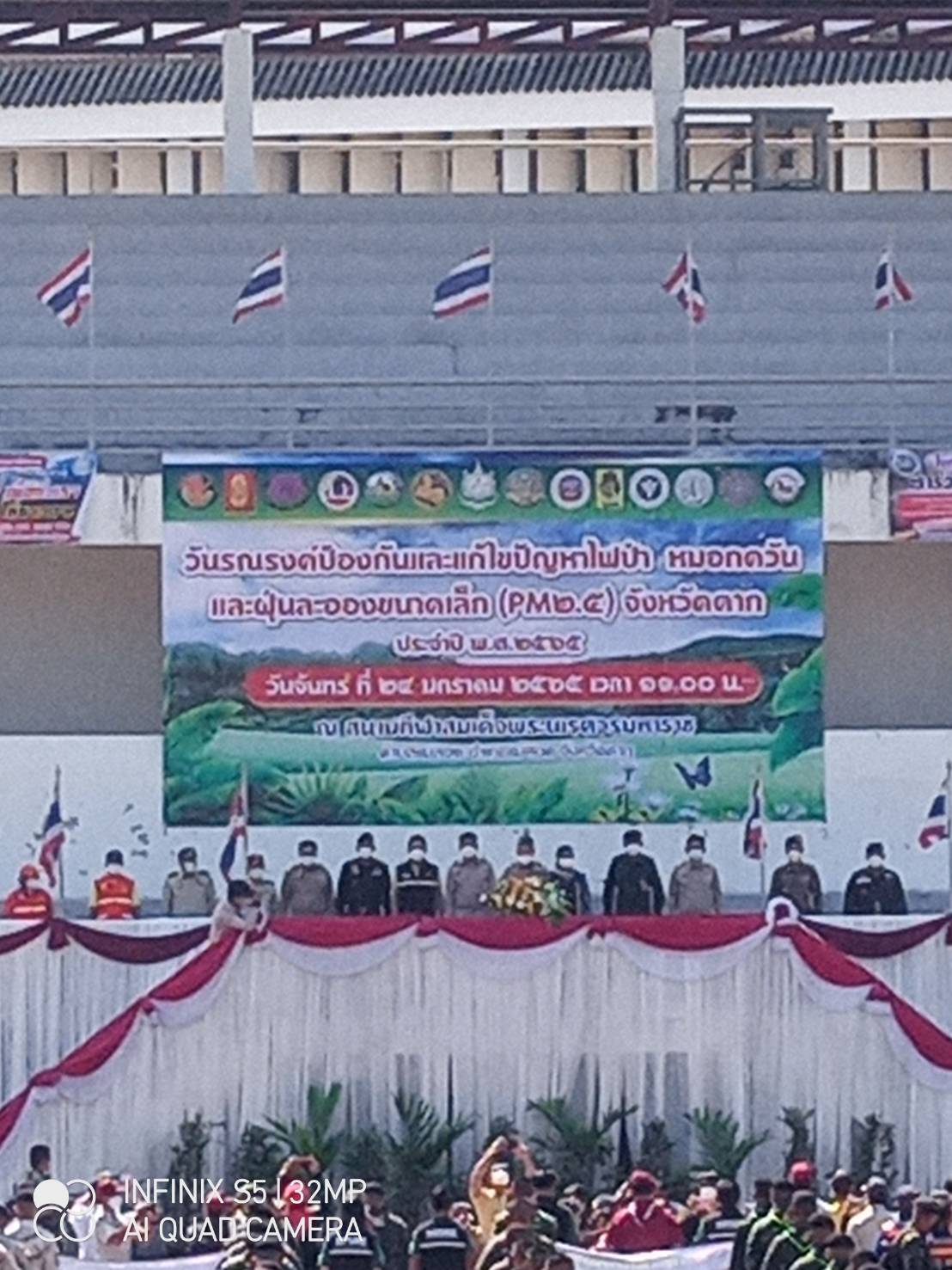 วันจันทร์ที่ 24 มกราคม 2565 เวลา 09.00 น.ฝ่ายป้องกันและบรรเทาสาธารณภัยนครแม่สอด ออกร่วมกิจกรรมวันรณรงค์ป้องกันและแก้ไขปัญหาไฟป่า หมอกควัน และฝุ่นละอองขนาดเล็ก(PM2.5) ณ สนามกีฬาสมเด็จพระนเรศวรมหาราช อำเภอแม่สอด จังหวัดตาก ที่มีทุกภาคส่วน ทั้ง ทหาร ตำรวจ ปภ อำเภอแม่สอด กรมป่าไม้ หน่วยงาน อปท. จิตอาสา ฯลฯ เพื่อรณรงค์เสริมสร้างการมีส่วนร่วมของทุกภาคส่วนในการป้องกันแก้ไขปัญหาไฟป่า ตลอดจนลดปัญหา ผลกระทบ และอันตราย อันเนื่องมาจากหมอกควันไฟป่า และเพื่อสนับสนุนของอุปโภค เตรียมความพร้อมในการปฏิบัติงานควบคุมไฟป่าในพื้นที่ นอกจากนี้เพื่อให้ ประชาชนเกิดความตระหนักรู้และเข้ามามีส่วนร่วมดำเนินงานป้องกัน แก้ไขปัญหาไฟป่า ตลอดจนเพื่อสร้างเครือข่ายในการอนุรักษ์ทรัพยากรธรรมชาติและสิ่งแวดล้อม รวมทั้งเพื่อเป็นการเตรียมความพร้อมในการปฏิบัติงานควบคุมไฟป่า