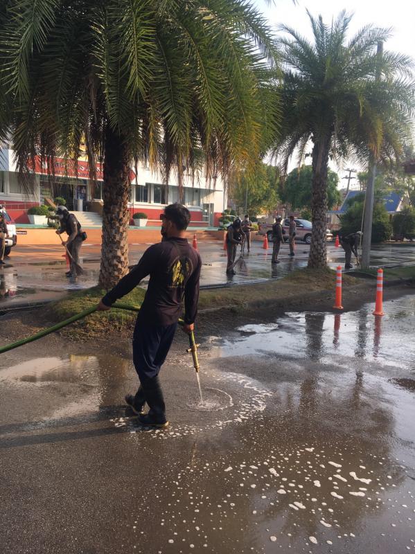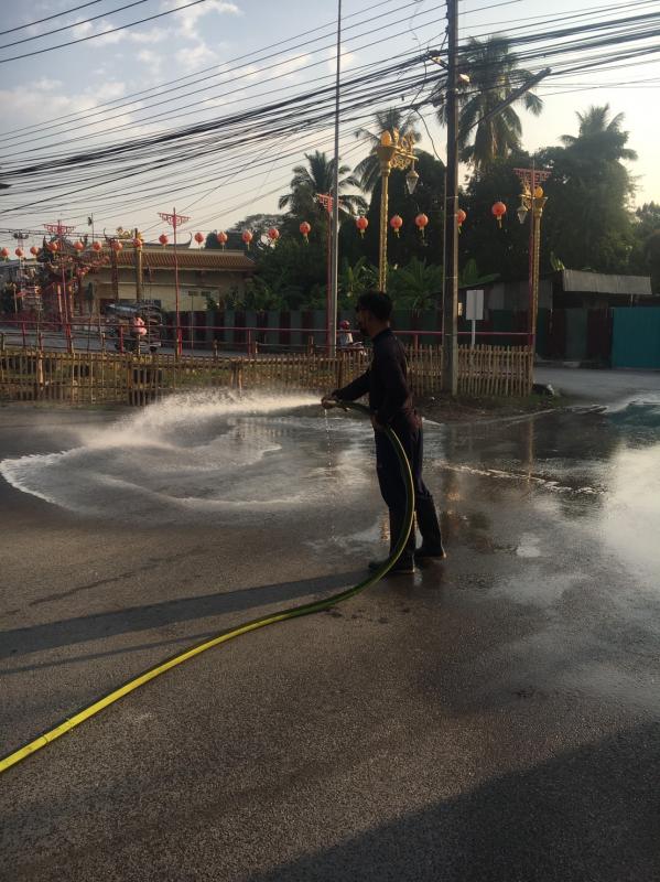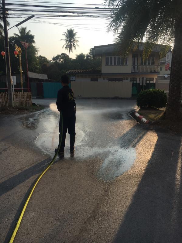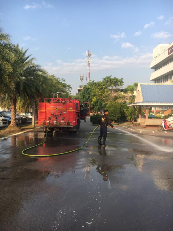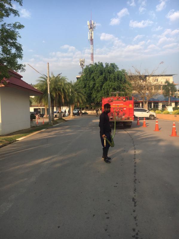 วันที่ 14 กุมภาพันธ์ 2565 เวลา 09.30 น. เจ้าหน้าที่ดับเพลิง ฝ่ายป้องกันและบรรเทาสาธารณภัย นำรถยนต์บรรทุกน้ำดับเพลิง ออกฉีดล้างทำความสะอาดลานอเนกประสงค์และถนนโดยรอบ ภายในสถานีตำรวจภูธรอำเภอแม่สอดจังหวัดตาก เพื่อขจัดสิ่งปนเปื้อน ขจัดเศษหิน ดิน ทราย รวมถึงป้องกันการแพร่ระบาดของเชื้อไวรัสโคโรน่าไวรัส 2019