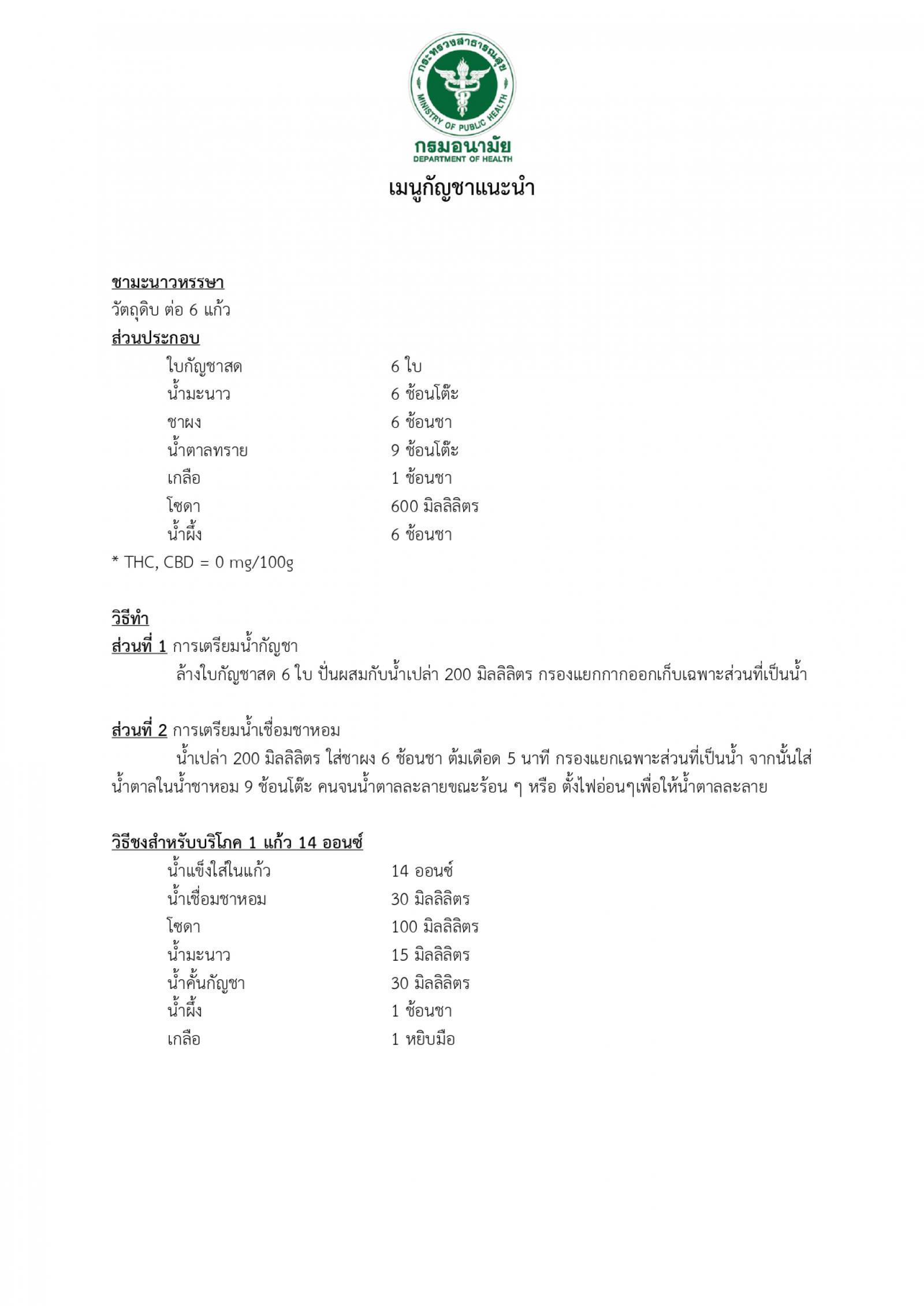 กรมอนามัย เมนูกัญชาแนะนำ