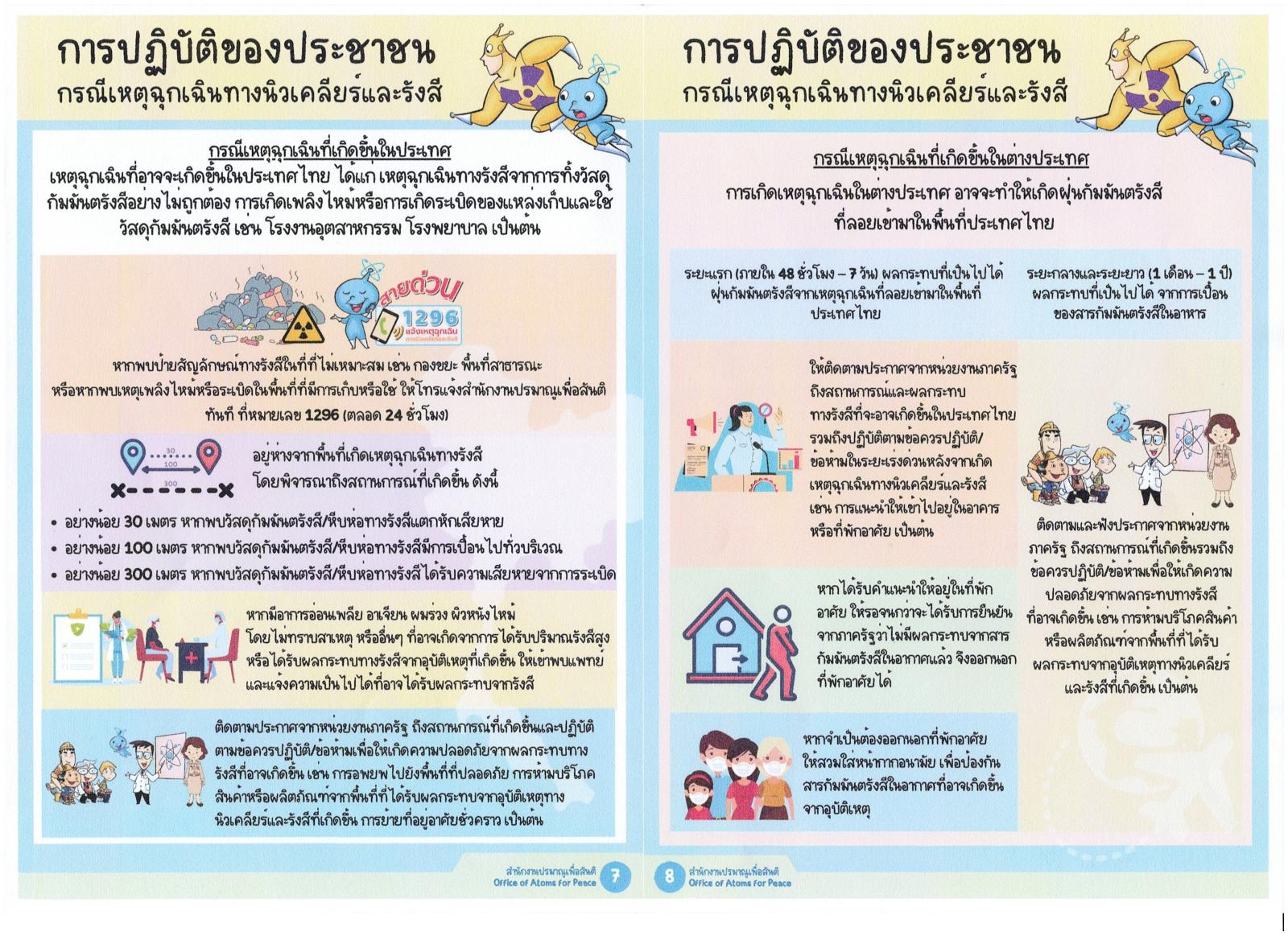 สำนักงานปรมาณูเพื่อสันติ ได้จัดทำคู่มือประชาชน เรื่อง แนวปฎิบัติของประชาชน กรณีฉุกเฉินทางนิวเคลียร์และรังสี
