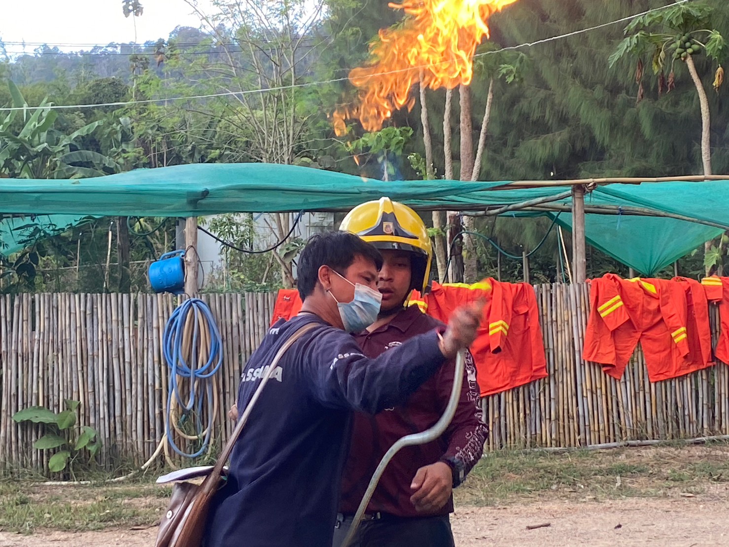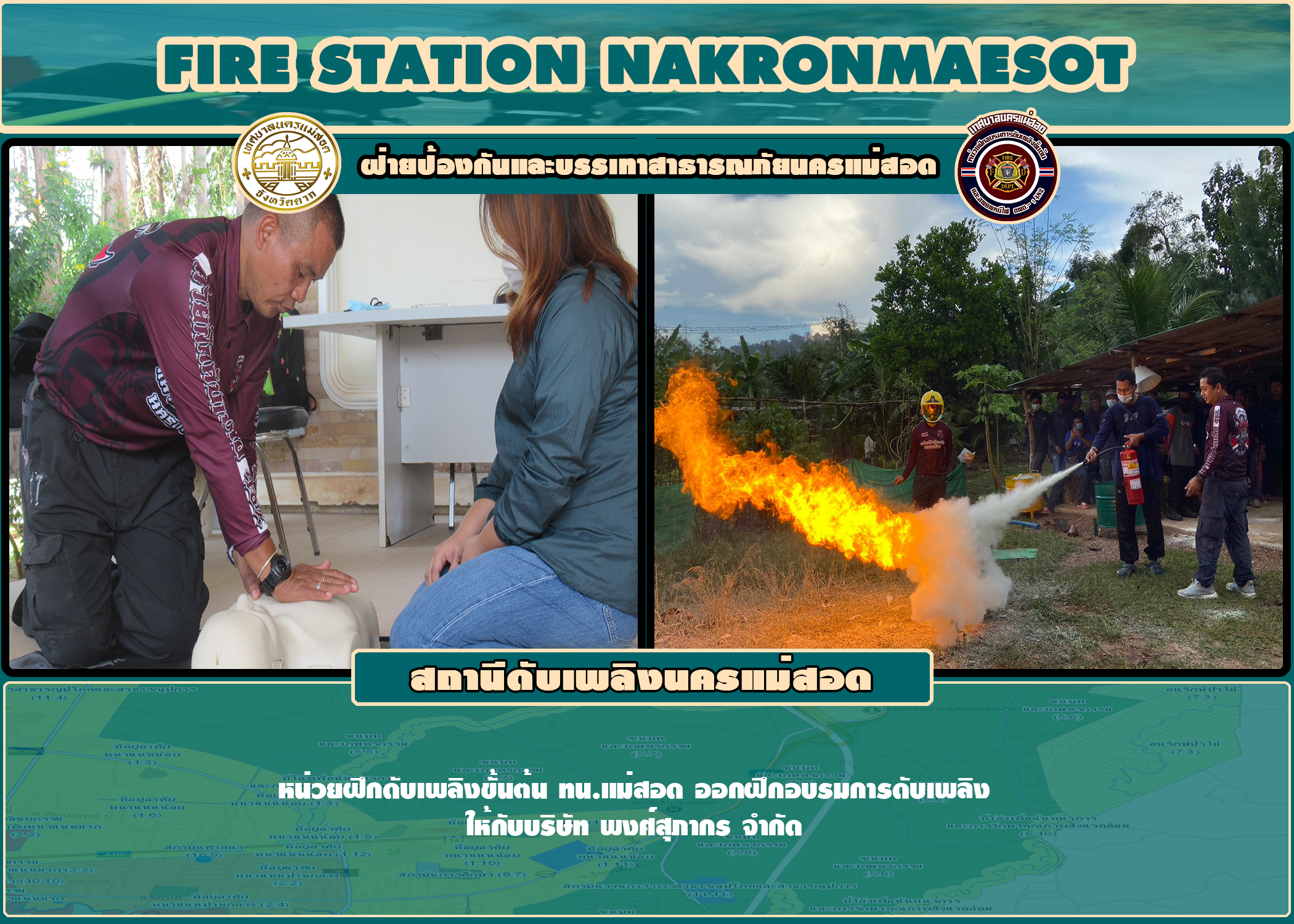 วันที่ 30 พฤศจิกายน 2565 เวลา 09.00 - 17.00 น. เจ้าหน้าที่หน่วยฝึก ดพต./ดพฝ.-ร482 ออกฝึกอบรม เรื่อง การดับเพลิงขั้นต้น การฝึกซ้อมดับเพลิง และฝึกซ้อมอพยพหนีไฟ ให้กับ บริษัท พงศ์สุภากร จำกัด ตามโครงการอบรมเชิงปฏิบัติการเรื่องการอบรมดับเพลิงเบื้องต้น ประจำปี 2565 โดยการจัดให้มีการฝึกอบรมการป้องกันและระงับอัคคีภัย การดับเพลิงเบื้องต้นและการใช้ถังเคมีดับเพลิง โดยมีการให้ความรู้เกี่ยวกับ เรื่อง แผนการดับเพลิงและวิธีการดับเพลิงของ สถานประกอบการ ฝึกซ้อมดับเพลิง และได้ให้ความรู้เกี่ยวกับการป้องกันระงับอัคคีภัย องค์ประกอบของการเกิดไฟ ประเภทของไฟ ความรู้เกี่ยวกับสารเคมี การใช้ถังดับเพลิงเคมี การเคลื่อนย้ายผู้ประสบเหตุ และการปฐมพยาบาลเบื้องต้น(cpr) พร้อมสาธิตการฝึกปฏิบัติ การใช้อุปกรณ์เครื่องมือการดับเพลิงและบรรเทาสาธารณภัย การใช้อุปกรณ์ดับเพลิงอย่างถูกวิธี เลือกใช้ ความปลอดภัย การแนะนำอุปกรณ์ชุดผจญเพลิง เป็นต้น