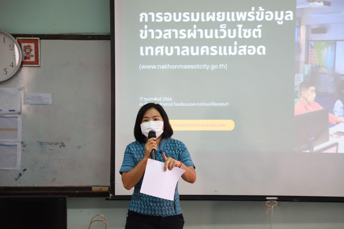 วันที่ 17 กุมภาพันธ์ 2566 เวลา 09.30 น.ว่าที่ร้อยตรี มาโนด ศรีนุ หัวหน้าฝ่ายป้องกันฯ นครแม่สอด มอบหมายให้เจ้าหน้าที่งานธุรการ ฝ่ายป้องกันฯ เข้าร่วมทบทวนการลงข้อมูลเว็บไซต์เทศบาลนครแม่สอด ณ ห้องคอมพิวเตอร์ โรงเรียนเทศบาลวัดมณีไพรสณฑ์ อำเภอแม่สอด จังหวัดตาก โดยมีว่าที่พันตรี ดร.ไพฑูรย์ ปริญญาธรรมกุล ผู้อำนวยการกองยุทธศาสตร์และงบประมาณ เป็นประธานเปิดการอบรม โดยมีงานประชาสัมพันธ์ เจ้าหน้าที่ดูแลเว็บไซต์แต่ละกอง เข้าร่วมการอบรมทบทวนการลงข้อมูลเว็บไซต์เทศบาลนครแม่สอด เพื่อให้การเผยแพร่ประชาสัมพันธ์ข้อมูลข่าวสารต่อสาธารณะผ่านเว็บไซต์เทศบาลนครแม่สอดเป็นไปอย่างมีประสิทธิภาพ รวดเร็ว ถูกต้อง เกิดประโยชน์สูงสุดและทันต่อเหตุการในปัจจุบัน
