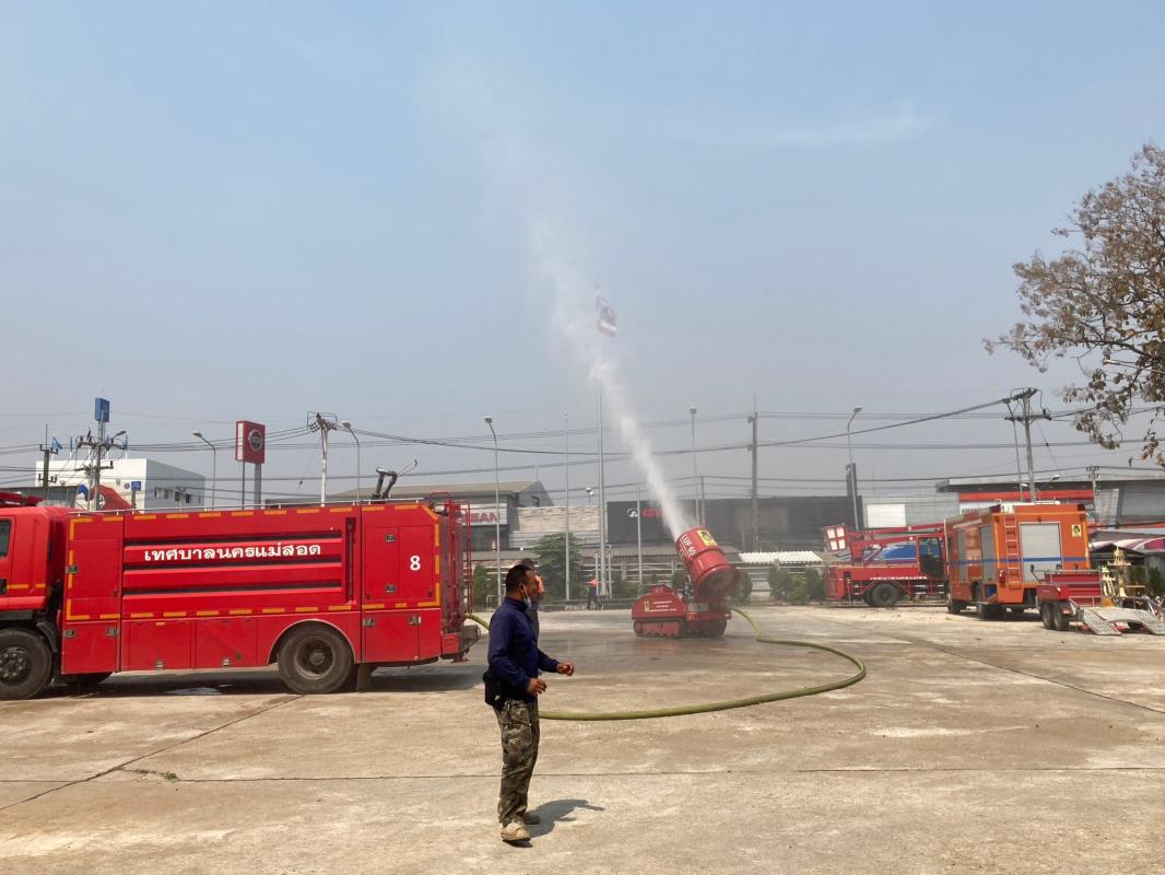 ดับเพลิงนครแม่สอด ร่วม ปภ.ตาก ฉีดพ่นหมอกควัน ณ สถานีดับเพลิงนครแม่สอด