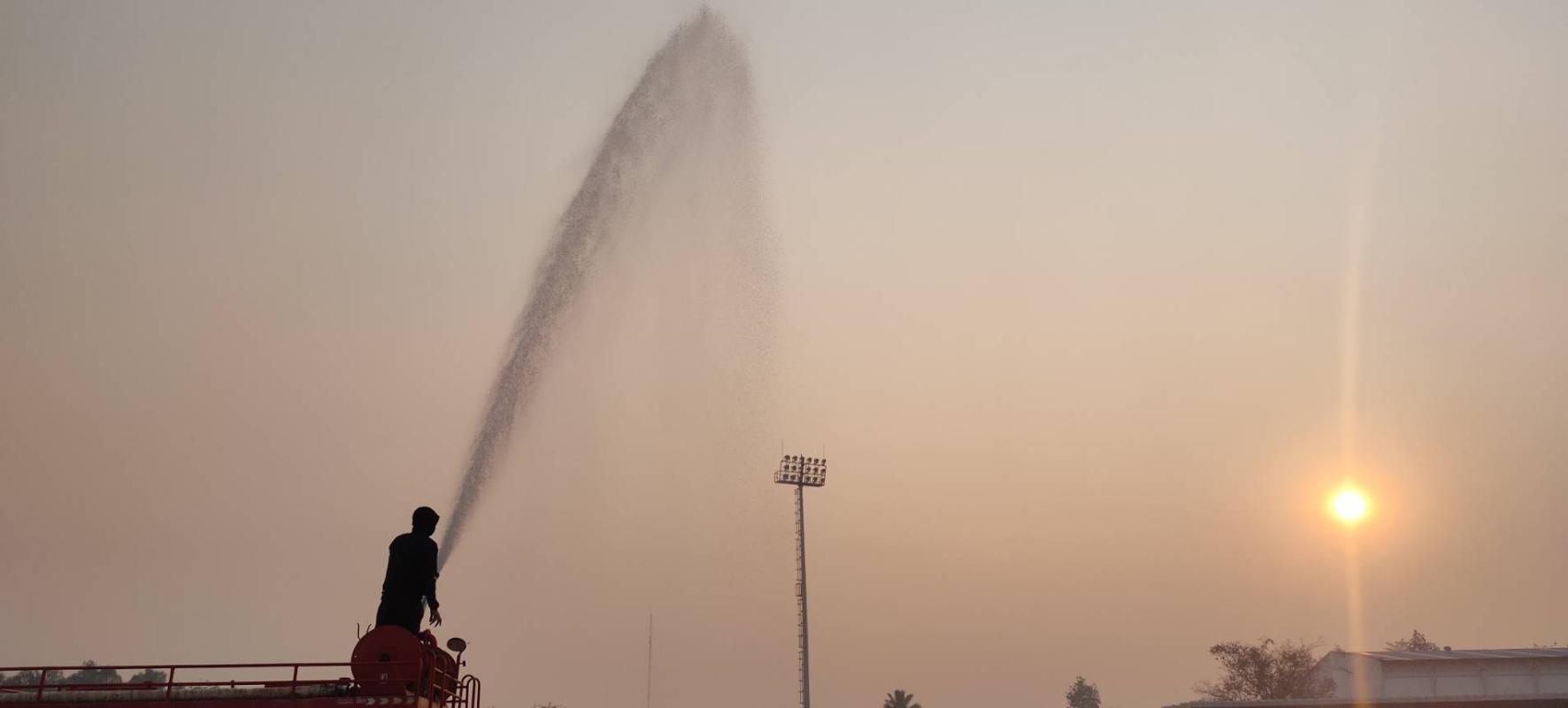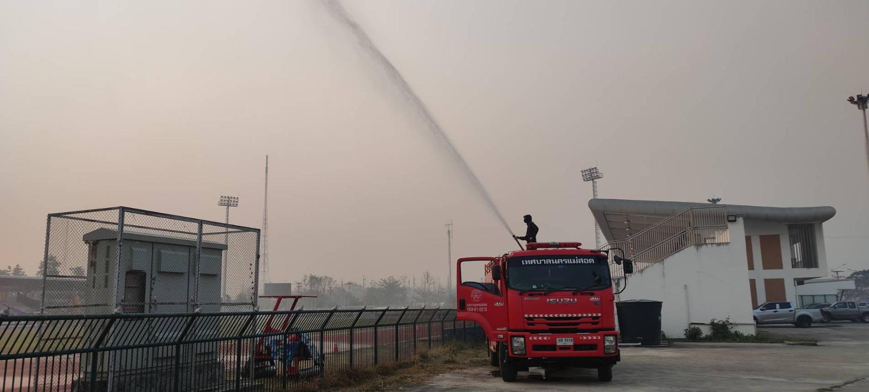 เวลา 07.00 น. จุดสนามกีฬานานาชาติ 5 อำเภอชายแดน จำนวนน้ำที่ใช้ 8,000 ลิตร