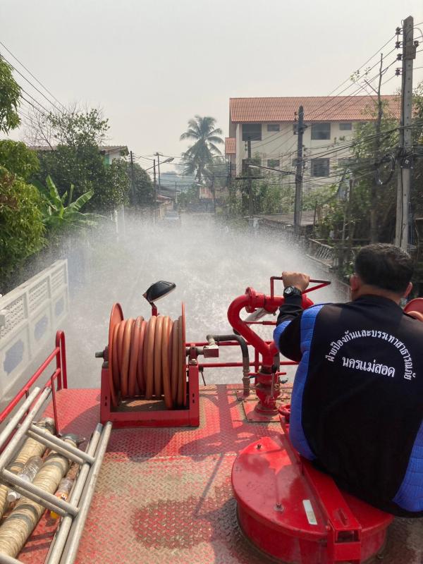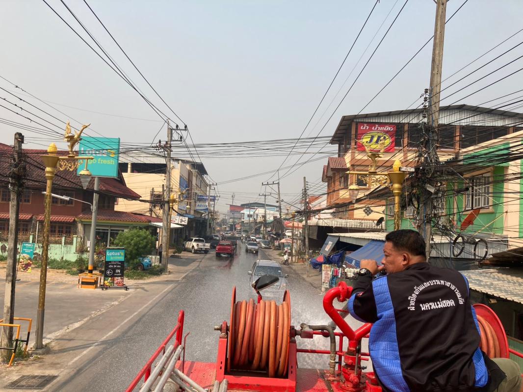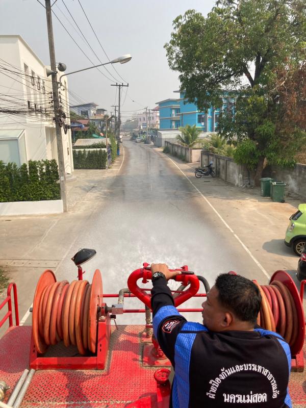 วันที่ 2 มีนาคม 2566 เวลา 11.00 น. ว่าที่ร้อยตรี ประเสริฐ ปวงละคร นายกเทศมนตรีนครแม่สอด พร้อมด้วยนายสุวิทย์ คามณีวงศ์ รองนายกเทศมนตรีนครแม่สอด ลงพื้นที่ควบคุมการปฏิบัติหน้าที่ของฝ่ายป้องกันฯ นครแม่สอด ในการฉีดน้ำพรมถนนเพื่อลดปัญหาฝุ่น PM 2.5 ถนนเส้นข้างร้านสุธิดาการเกษตร ถนนเส้นศาลปู่แดง และบริเวณใกล้เคียง