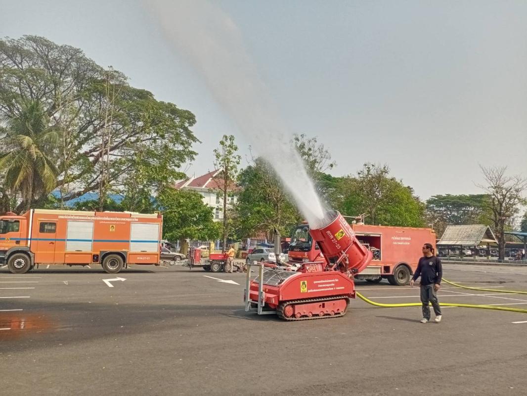 ฉีดน้ำพ่นหมอกควัน ร่วม ปภ.จุดที่ว่าการอำเภอแม่สอด