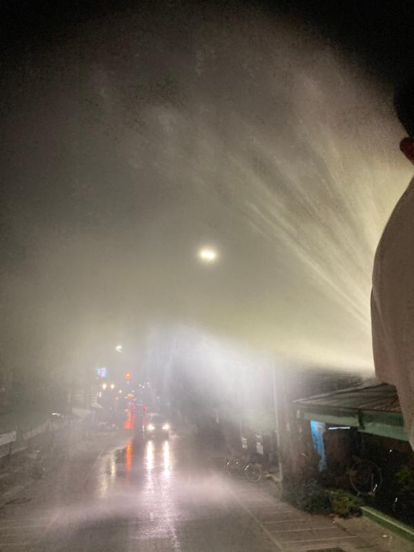 วันที่ 2 มีนาคม 2566 เวลา 20.00 น. ว่าที่ร้อยตรี ประเสริฐ ปวงละคร นายกเทศมนตรีนครแม่สอด พร้อมคณะผู้บริหาร ลงพื้นที่ควบคุมการปฏิบัติหน้าที่ของฝ่ายป้องกันฯ นครแม่สอด ในการฉีดพรมถนนเพื่อลดปัญหาฝุ่น PM 2.5 ถนนอินทรคีรี ตั้งแต่หน้าวัดดอนไชย จนถึงสี่แยกบ้านค้างภิบาล