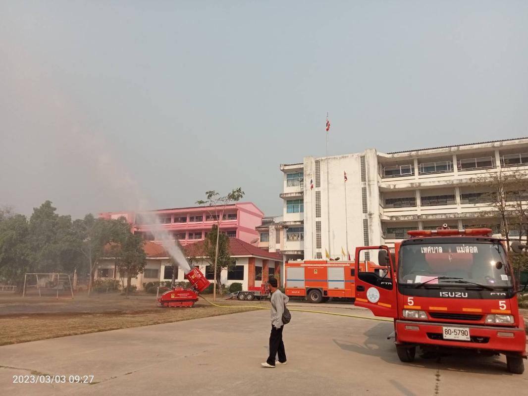 วันที่ 3 มีนาคม 2566 ว่าที่ร้อยตรี ประเสริฐ ปวงละคร นายกเทศมนตรีนครแม่สอด มอบหมายให้ฝ่ายป้องกันฯ นครแม่สอด ทำการร่วม สนง.ปภ.ตาก สาขาแม่สอด จัดรถน้ำและรถดับเพลิง เพื่อฉีดพ่นละอองน้ำ และฉีดล้างทำความสะอาดถนน เพื่อลดค่าฝุ่นละอองและเพิ่มความชื้นในอากาศ เพื่อแก้ไขปัญหาฝุ่นละอองขนาดเล็ก ในพื้นที่อำเภอแม่สอด 4 จุด
