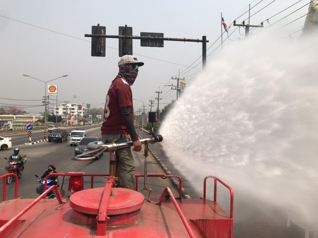 ฉีดน้ำพ่นหมอกควัน ร่วม ปภ. พื้นที่อำเภอแม่สอด