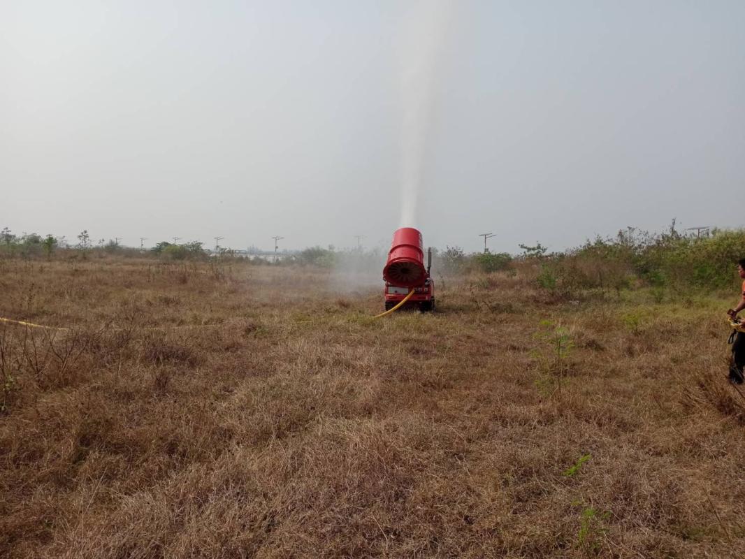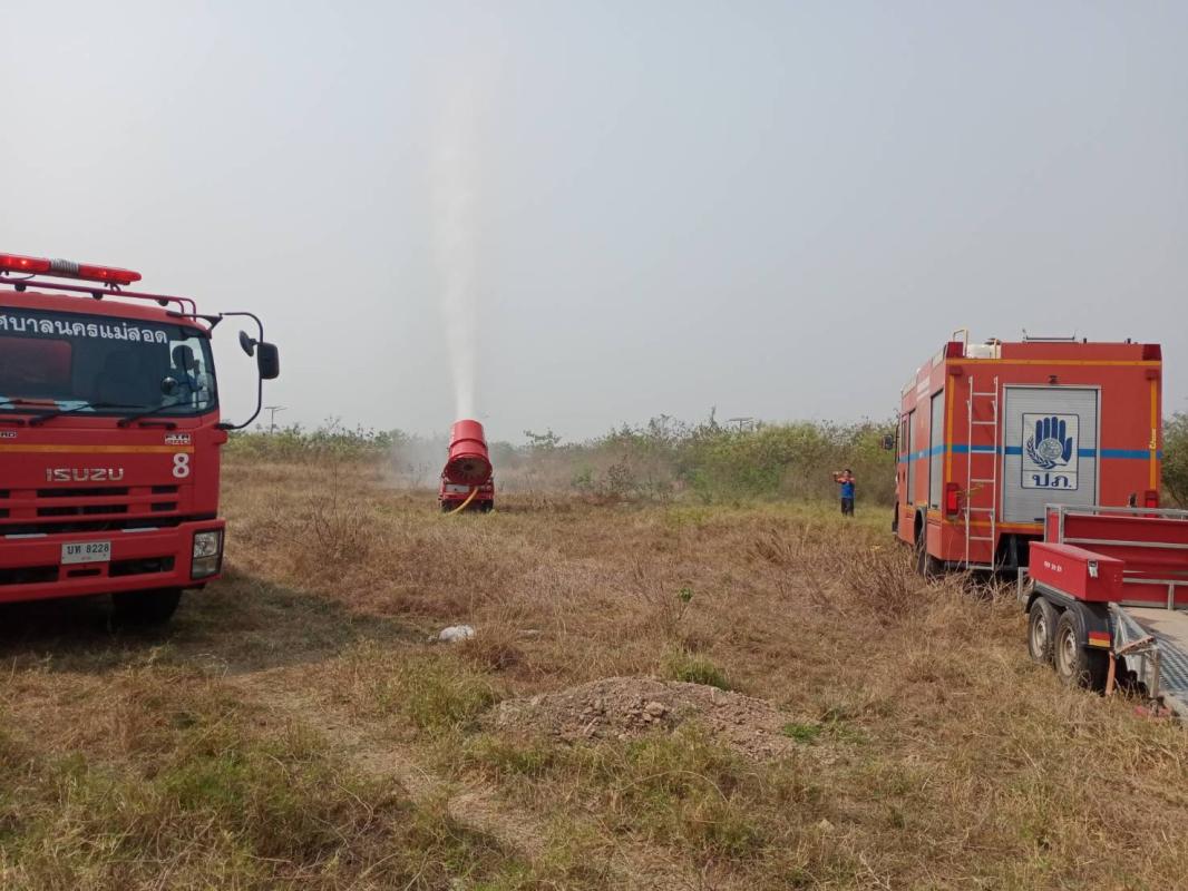 ฉีดน้ำพ่นหมอกควัน ร่วม ปภ.จุดบริเวณถนนแม่สอด - แม่ตาว