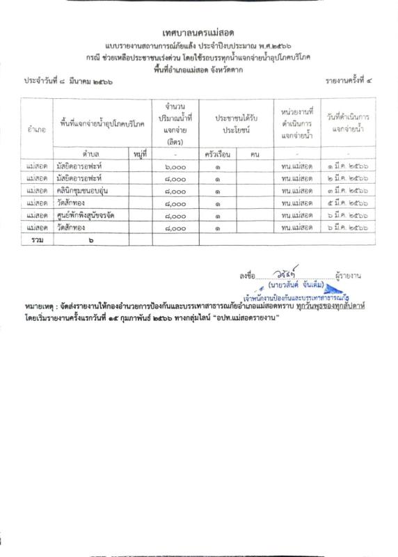 วันที่ 3 มีนาคม 2566 คลินิกชุมชนอบอุ่น ทน.แม่สอด/ปริมาณน้ำที่บริการ 8,000 ลิตร /1 เที่ยว