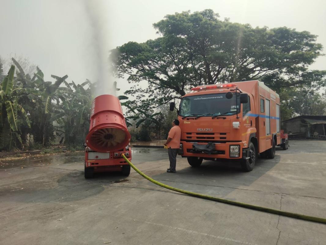 -เครื่องจักรกล กรม ปภ.โดยศูนย์ป้องกันและบรรเทาสาธารณภัย เขต 8 กำแพงเพชร จำนวน 2 คัน พร้อม ชุดยานยนต์ดับเพลิงพ่นหมอกน้ำด้วยระบบควบคุมระยะไกล(LUF 60) จำนวน 2 ชุด