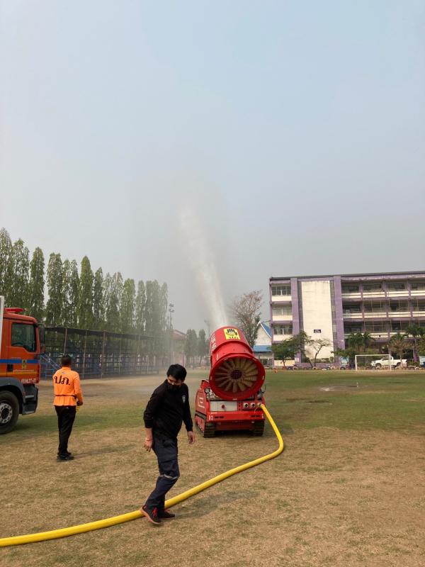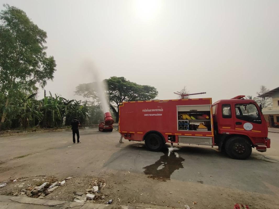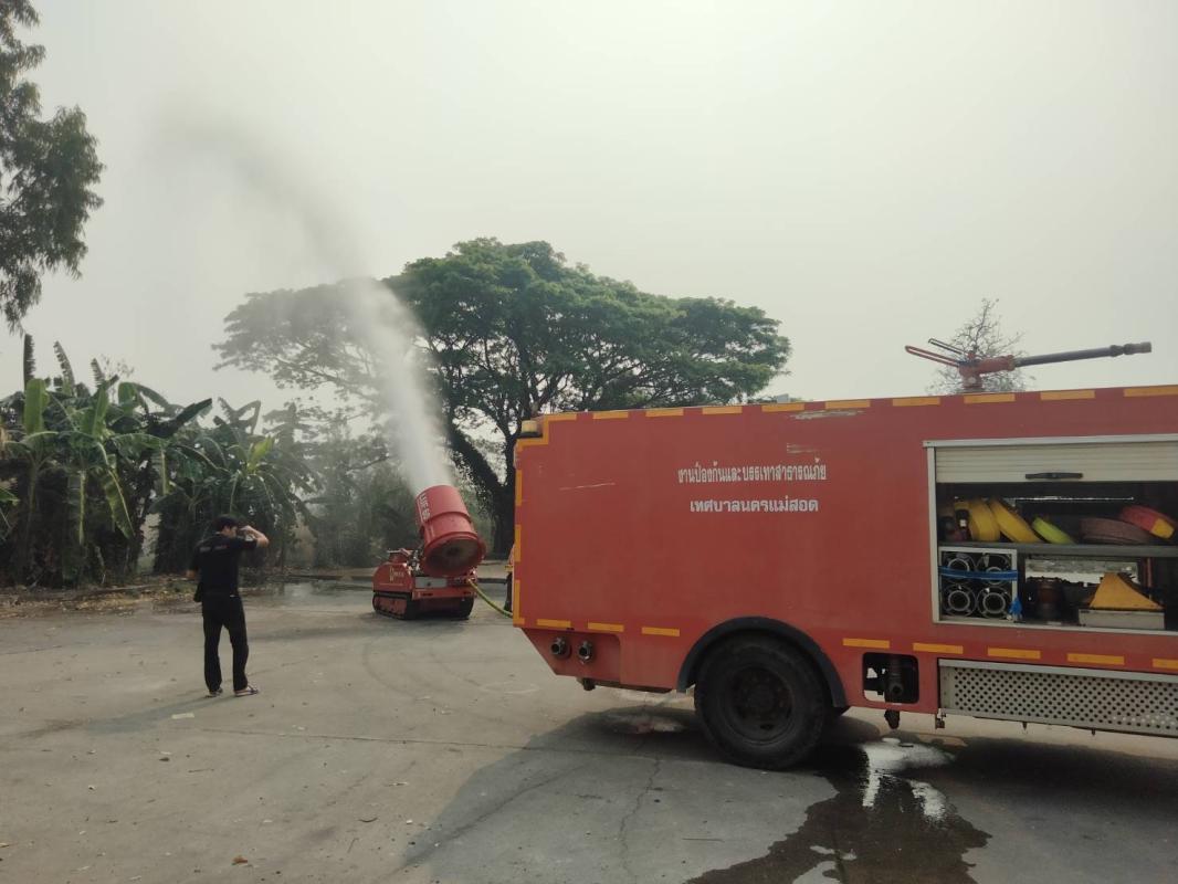 วันที่ 10 มีนาคม 2566 ว่าที่ร้อยตรี ประเสริฐ ปวงละคร นายกเทศมนตรีนครแม่สอด มอบหมายให้ฝ่ายป้องกันฯ นครแม่สอด ทำการร่วม สนง.ปภ.ตาก สาขาแม่สอด จัดรถน้ำและรถดับเพลิง เพื่อฉีดพ่นละอองน้ำ และฉีดล้างทำความสะอาดถนน เพื่อลดค่าฝุ่นละอองและเพิ่มความชื้นในอากาศ เพื่อแก้ไขปัญหาฝุ่นละอองขนาดเล็ก ในพื้นที่อำเภอแม่สอด 2 จุด