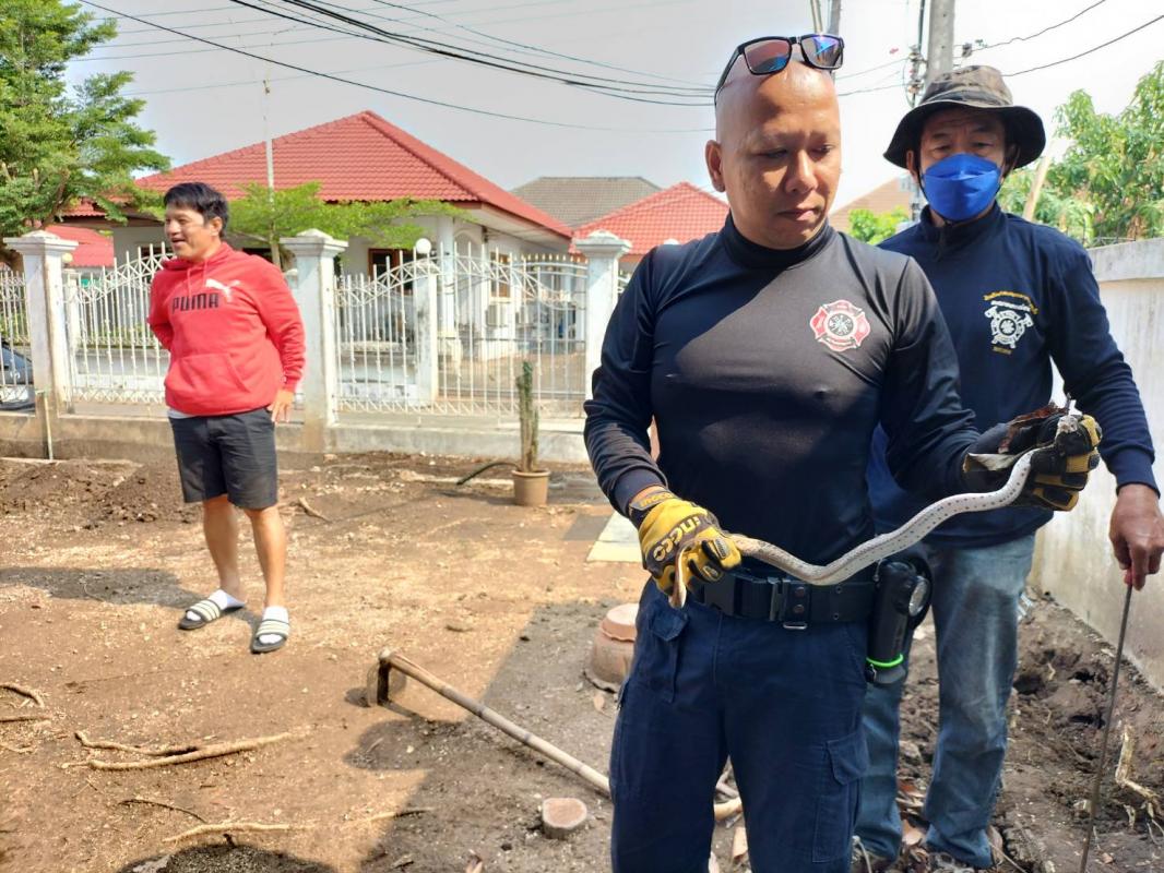 วันที่ 19 มีนาคม 2566 เวลา 10.00 น. ฝ่ายป้องกันฯ นครแม่สอด ได้รับแจ้งมีงูเข้าบ้านประชาชน ซอย 11 หมู่บ้านแม่สอดวิลล่า อำเภอแม่สอด จังหวัดตาก จึงรายงานให้ผู้บังคับบัญชาทราบ พร้อมนำรถยนต์กู้ตรวจการณ์ และอุปกรณ์ ออกตรวจสอบและปฏิบัติหน้าที่ พบงูยาวประมาณ 1 เมตร หลบซ่อนตัวอยู่บริเวณภายในบ้าน จึงทำการช่วยเหลือ พร้อมจับปล่อยคืนสู่ธรรมชาติ