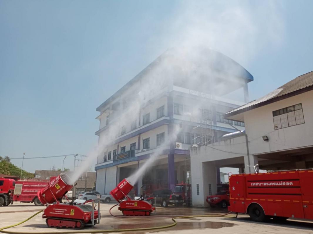 วันที่ 24 มีนาคม 2566 ว่าที่ร้อยตรี ประเสริฐ ปวงละคร นายกเทศมนตรีนครแม่สอด มอบหมายให้ฝ่ายป้องกันฯ นครแม่สอด ทำการร่วม สนง.ปภ.ตาก สาขาแม่สอด จัดรถน้ำและรถดับเพลิง เพื่อฉีดพ่นละอองน้ำ และฉีดล้างทำความสะอาดถนน เพื่อลดค่าฝุ่นละอองและเพิ่มความชื้นในอากาศ เพื่อแก้ไขปัญหาฝุ่นละอองขนาดเล็ก ในพื้นที่อำเภอแม่สอด 2 จุด