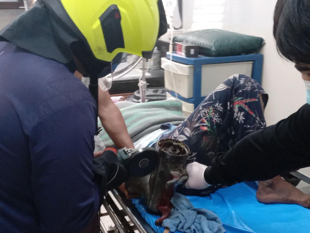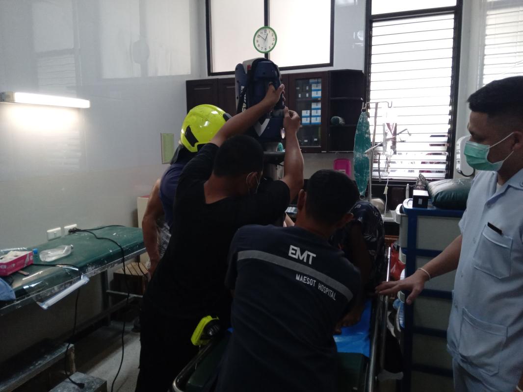 วันที่ 6 เมษายน 2566 เวลา 11.00 น.ศูนย์วิทยุเมืองฉอด ได้รับการประสานจากโรงพยาบาลแม่สอด ขอสนับสนุนเจ้าหน้าที่พร้อมอุปกรณ์ ช่วยผู้บาดเจ็บมือติดเครื่องบดถั่ว ณ ห้องฉุกเฉิน โรงพยาบาลแม่สอด โดยเจ้าหน้าที่ได้ใช้อุปกรณ์กู้ภัย(เครื่องตัดถ่าง,เครื่องเจียเหล็ก) จากรถยนต์กู้ภัยเคลื่อนที่เร็ว ทำการช่วยเหลือสำเร็จ ร่วม พิทักษ์กาญจน์ จุดนครแม่สอด