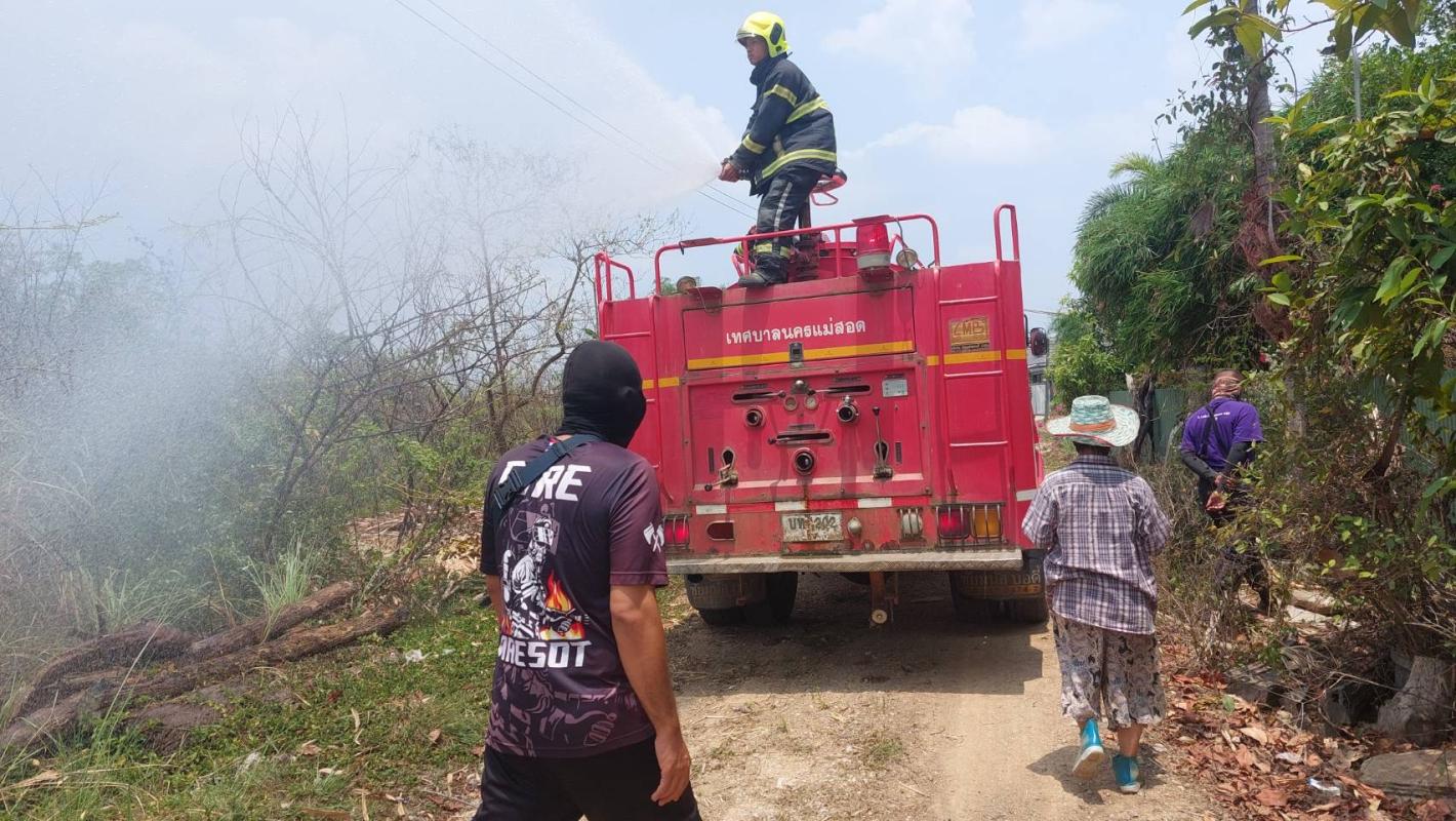 วันที่ 30 เมษายน 2566 เวลา 12.45 น. ฝ่ายป้องกันฯ นครแม่สอด ได้รับแจ้งเหตุเพลิงไหม้หญ้าแห้ง พื้นที่ชุมชนสองแคว 2 ต.แม่สอด อ.แม่สอด จ.ตาก จึงนำรถยนต์บรรทุกน้ำดับเพลิง ออกปฏิบัติหน้าที่ เมื่อถึงสถานที่เกิดเหตุพบเป็นพื้นที่รกร้าง(จุดเดิมของวันที่ 29/4/66) จึงทำการระงับเหตุเพลิงไหม้โดยการฉีดน้ำ จนสามารถควบคุมเพลิงไหม้ไว้ได้ และทำการเฝ้าระวังที่เกิดเหตุเพราะอาจจะเกิดเพลิงไหม้ซ้ำซ้อนขึ้นอีก