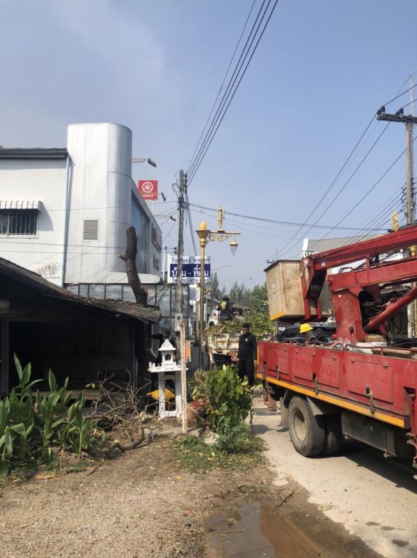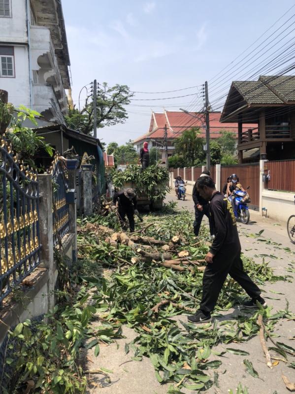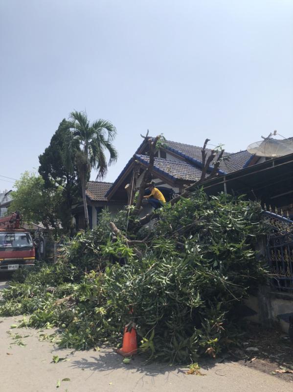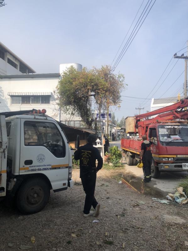 วันที่ 1 พฤษภาคม 2566 เวลา 09.00 - 12.00 น.ฝ่ายป้องกันฯ นครแม่สอด ได้รับคำขอความอนุเคราะห์จากประชาชนให้ช่วยตัดต้นไม้แนวสายไฟฟ้าและริมรั้ว บริเวณสะพานดำและหลังวัดชุมพลคีรี เกรงว่าเมื่อเกิดฝนตกลมแรงอาจเกิดการล้มทับสายไฟก่อให้เกิดอันตรายได้ เมื่อได้รับคำขอดังกล่าว จึงนำรถยนต์บรรทุก 6 ล้อ พร้อมอุปกรณ์ ออกตรวจสอบพื้นที่ พบว่ามีต้นไม้สูงใหญ่และเสี่ยงต่อการเกิดเหตุอันตรายจริง จึงประสานรถกระเช้าไฟฟ้าเข้าร่วมดำเนินการจุดดังกล่าว พนักงานดับเพลิงทำการใช้มีด เลื่อยโซ่ยนต์ ทำการตัดจนดำเนินการแล้วเสร็จ พร้อมยกใส่รถยนต์บรรทุกเพื่อนำไปทิ้งต่อไป