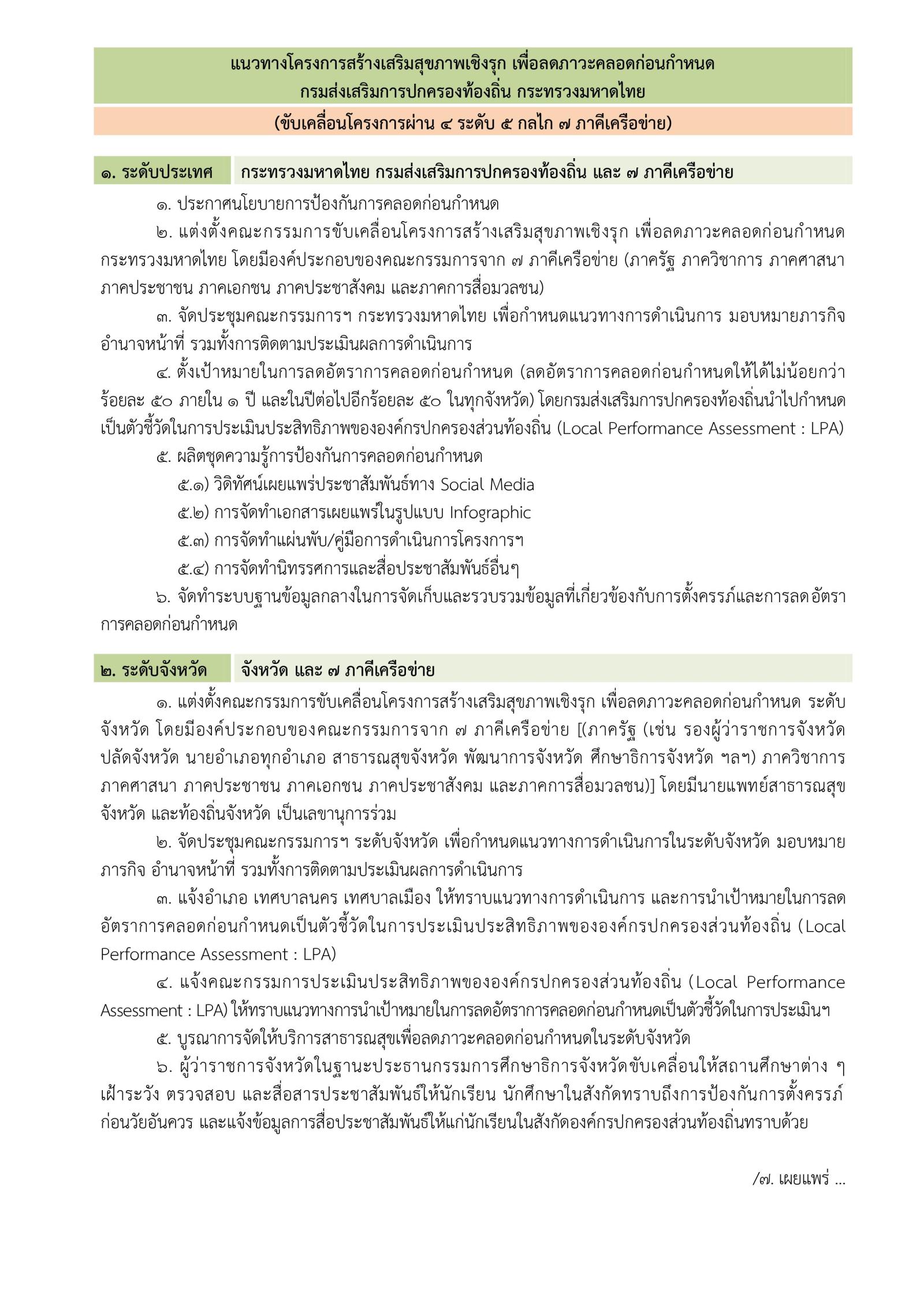แนวทางโครงการสร้างเสริมสุขภาพเชิงรุก เพื่อลดภาวะคลอดก่อนกำหนด กรมส่งเสริมการปกครองท้องถิ่น กระทรวงมหาดไทย