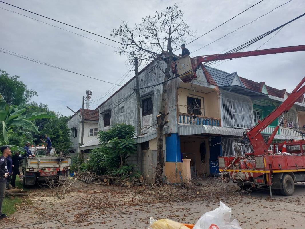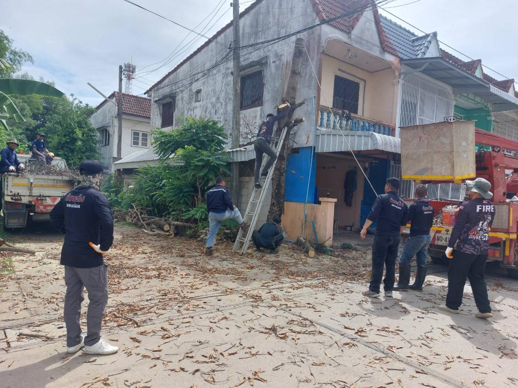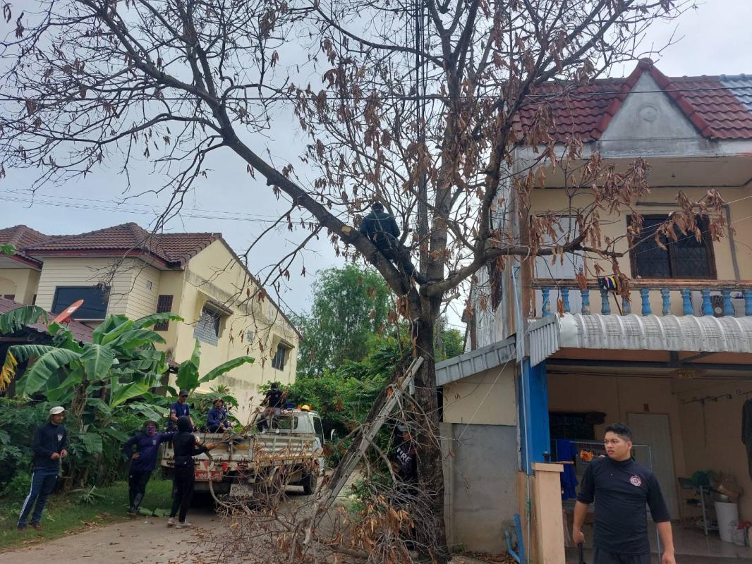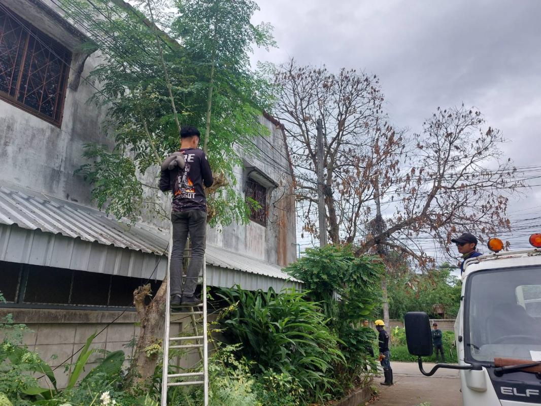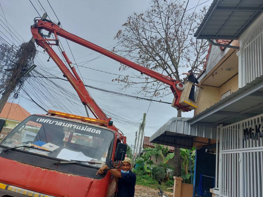 วันที่ 19 มิถุนายน 2566 ฝ่ายป้องกันฯ นครแม่สอด ได้รับคำขอความอนุเคราะห์จากประชาชนให้ช่วยตัดต้นไม้แห้งตาย(ต้นมะม่วง) ถนนสมัครสรรพการ ตำบลแม่สอด อำเภอแม่สอด จังหวัดตาก เกรงว่าเมื่อเกิดฝนตกลมแรงอาจเกิดการล้มทับก่อให้เกิดอันตรายได้ เมื่อได้รับคำขอดังกล่าว จึงนำรถยนต์บรรทุก 6 ล้อ พร้อมอุปกรณ์ ออกตรวจสอบพื้นที่ พบว่ามีต้นไม้แห้งสูงและเสี่ยงต่อการเกิดเหตุอันตรายจริง จึงประสานรถกระเช้าไฟฟ้าเข้าร่วมดำเนินการจุดดังกล่าว พนักงานดับเพลิงทำการใช้มีด เลื่อยโซ่ยนต์ ทำการตัดจนพร้อมยกใส่รถยนต์บรรทุกดำเนินการต่อไป