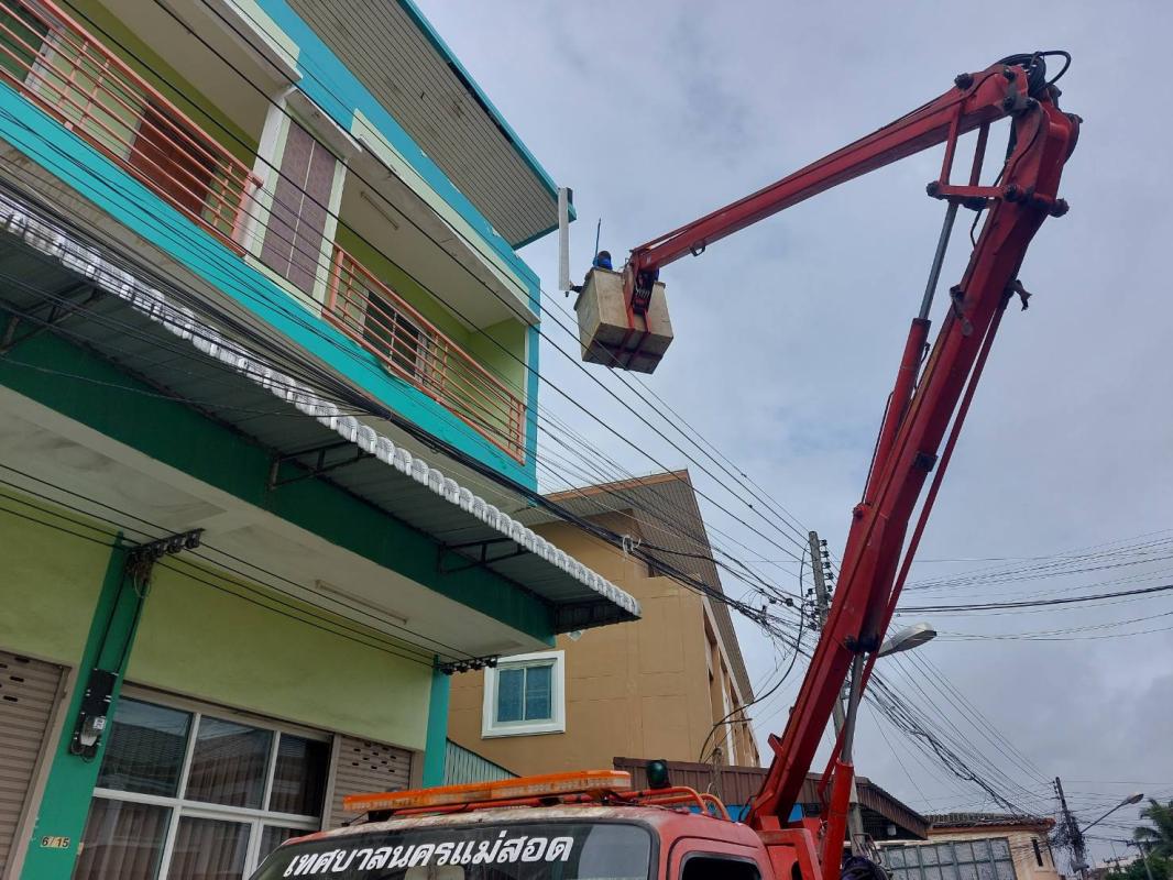 วันที่ 14 กรกฎาคม 2566 เวลา 08.30 น. ฝ่ายป้องกันฯ นครแม่สอด ได้รับการขอความช่วยเหลือจากประชาชน เหตุรางน้ำหลุดห้อย ชุมชนอิสลาม ตำบลแม่สอด อำเภอแม่สอด จังหวัดตาก จึงรายงานให้ผู้บังคับบัญชาทราบ พร้อมนำรถยนต์ตรวจการณ์ และอุปกรณ์ ออกตรวจสอบและปฏิบัติหน้าที่พื้นที่ดังกล่าว เป็นบ้านทาวน์โฮม 2 ชั้น พบรางน้ำหลุดห้อยออกมาเกรงว่าจะทำให้ประชาชนที่สัญจรไปมาบริเวณนั้นได้รับอันตราย จึงประสานรถกระเช้ากองช่างร่วมดำเนินการ โดยทำการซ่อมชั่วคราว เพื่อให้ช่างเฉพาะทางเข้ามาจัดการต่อไป