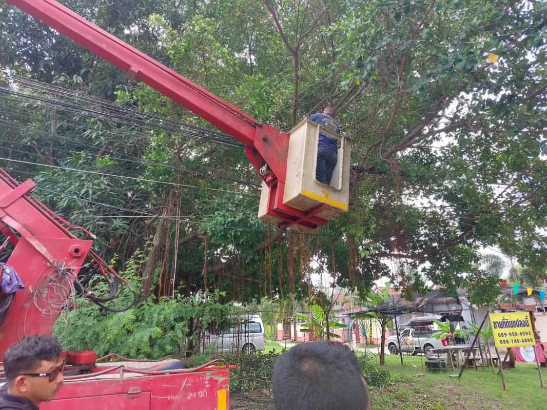 วันที่ 16 กรกฎาคม 2566 ฝ่ายป้องกันฯ นครแม่สอด ได้รับคำขอความอนุเคราะห์จากประชาชนให้ช่วยตัดต้นไม้พาดผ่านสายไฟฟ้า บริเวณบ้านสิงโตรีสอร์ท ตำบลแม่สอด อำเภอแม่สอด จังหวัดตาก เกรงว่าเมื่อเกิดฝนตกลมแรงอาจเกิดการล้มทับก่อให้เกิดอันตรายได้ เมื่อได้รับคำขอดังกล่าว จึงนำรถยนต์บรรทุก 6 ล้อ พร้อมอุปกรณ์ ออกตรวจสอบพื้นที่ พบว่ามีต้นไม้สูงและเสี่ยงต่อการเกิดเหตุอันตรายจริง จึงประสานรถกระเช้าไฟฟ้าเข้าร่วมดำเนินการจุดดังกล่าว พนักงานดับเพลิงทำการใช้มีด เลื่อยโซ่ยนต์ ทำการตัดจนพร้อมยกใส่รถยนต์บรรทุกดำเนินการต่อไป