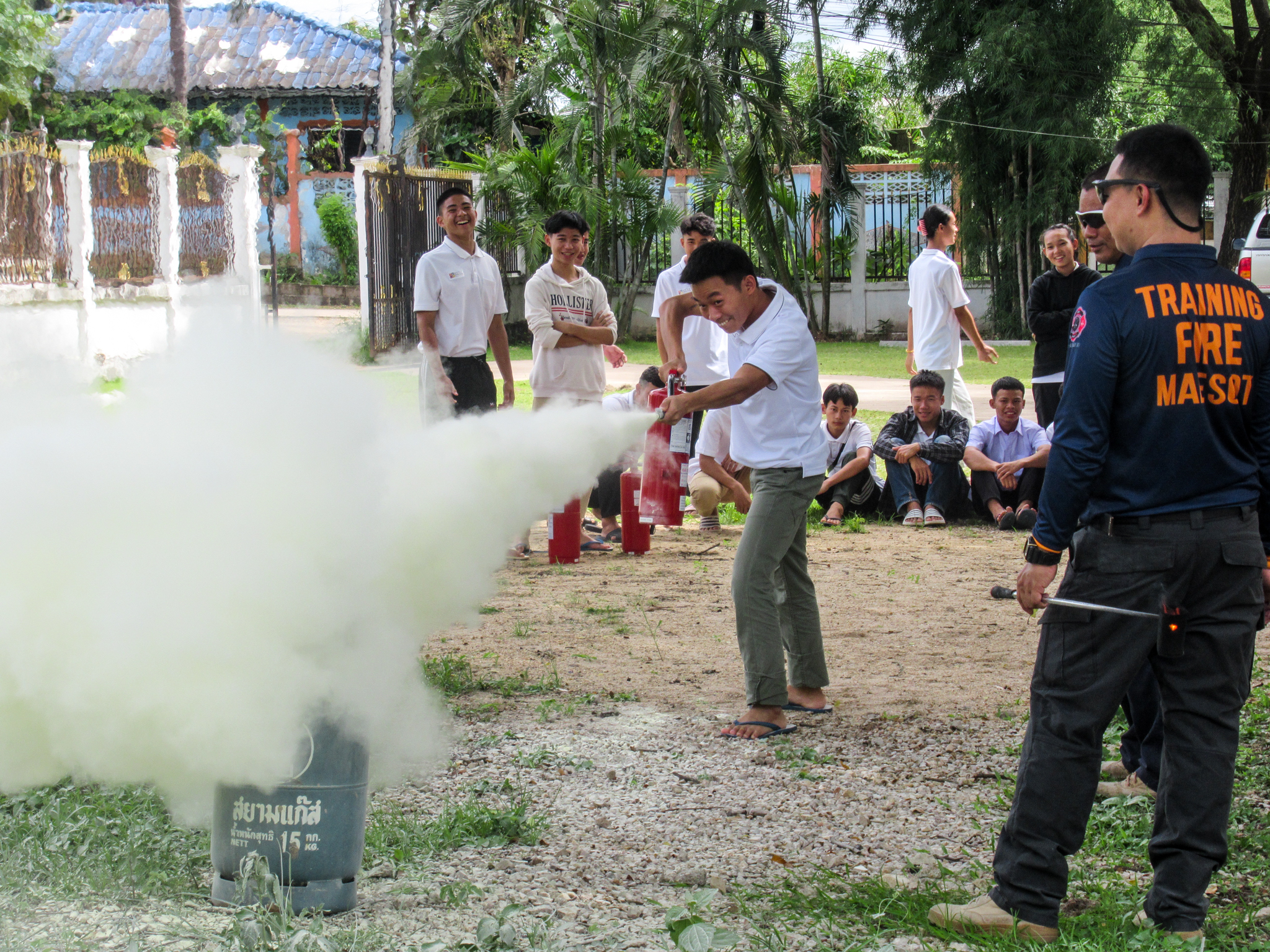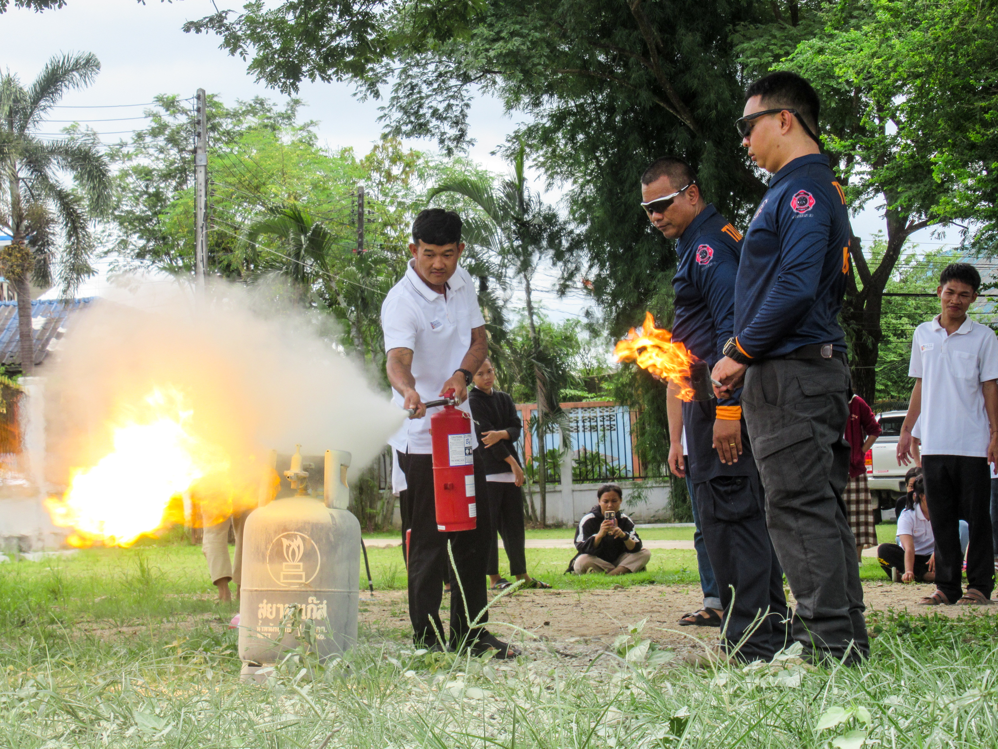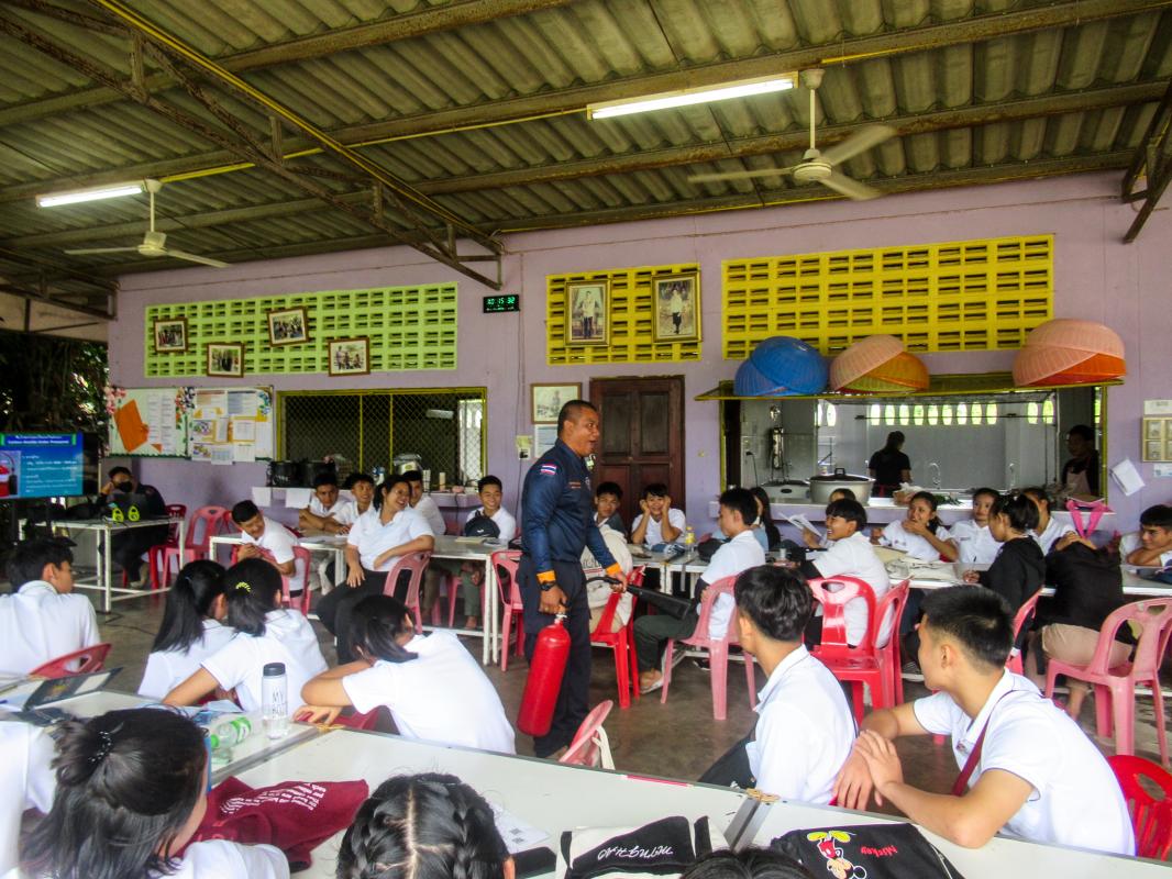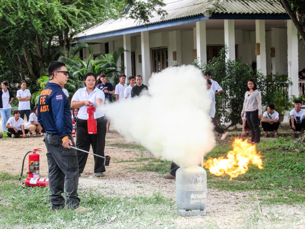 วันที่ 25 กรกฎาคม 2566 เวลา 08.00 - 17.00 น. เจ้าหน้าที่หน่วยฝึก ดพต./ดพฝ.-ร482 ออกฝึกอบรม เรื่อง การดับเพลิงขั้นต้น การฝึกซ้อมดับเพลิง และฝึกซ้อมอพยพหนีไฟ ให้กับ ศูนย์ฝึกภัตตาคารและการโรงแรม HCTC ตามโครงการอบรมเชิงปฏิบัติการเรื่องการอบรมดับเพลิงเบื้องต้น ประจำปี 2566 โดยการจัดให้มีการฝึกอบรมการป้องกันและระงับอัคคีภัย การดับเพลิงเบื้องต้นและการใช้ถังเคมีดับเพลิง โดยมีการให้ความรู้เกี่ยวกับ เรื่อง แผนการดับเพลิงและวิธีการดับเพลิงของ สถานประกอบการ ฝึกซ้อมดับเพลิง และได้ให้ความรู้เกี่ยวกับการป้องกันระงับอัคคีภัย องค์ประกอบของการเกิดไฟ ประเภทของไฟ ความรู้เกี่ยวกับสารเคมี การใช้ถังดับเพลิงเคมี พร้อมสาธิตการฝึกปฏิบัติ การใช้อุปกรณ์เครื่องมือการดับเพลิงและบรรเทาสาธารณภัย การใช้อุปกรณ์ดับเพลิงอย่างถูกวิธี เลือกใช้ ความปลอดภัย การแนะนำอุปกรณ์ชุดผจญเพลิง เป็นต้น