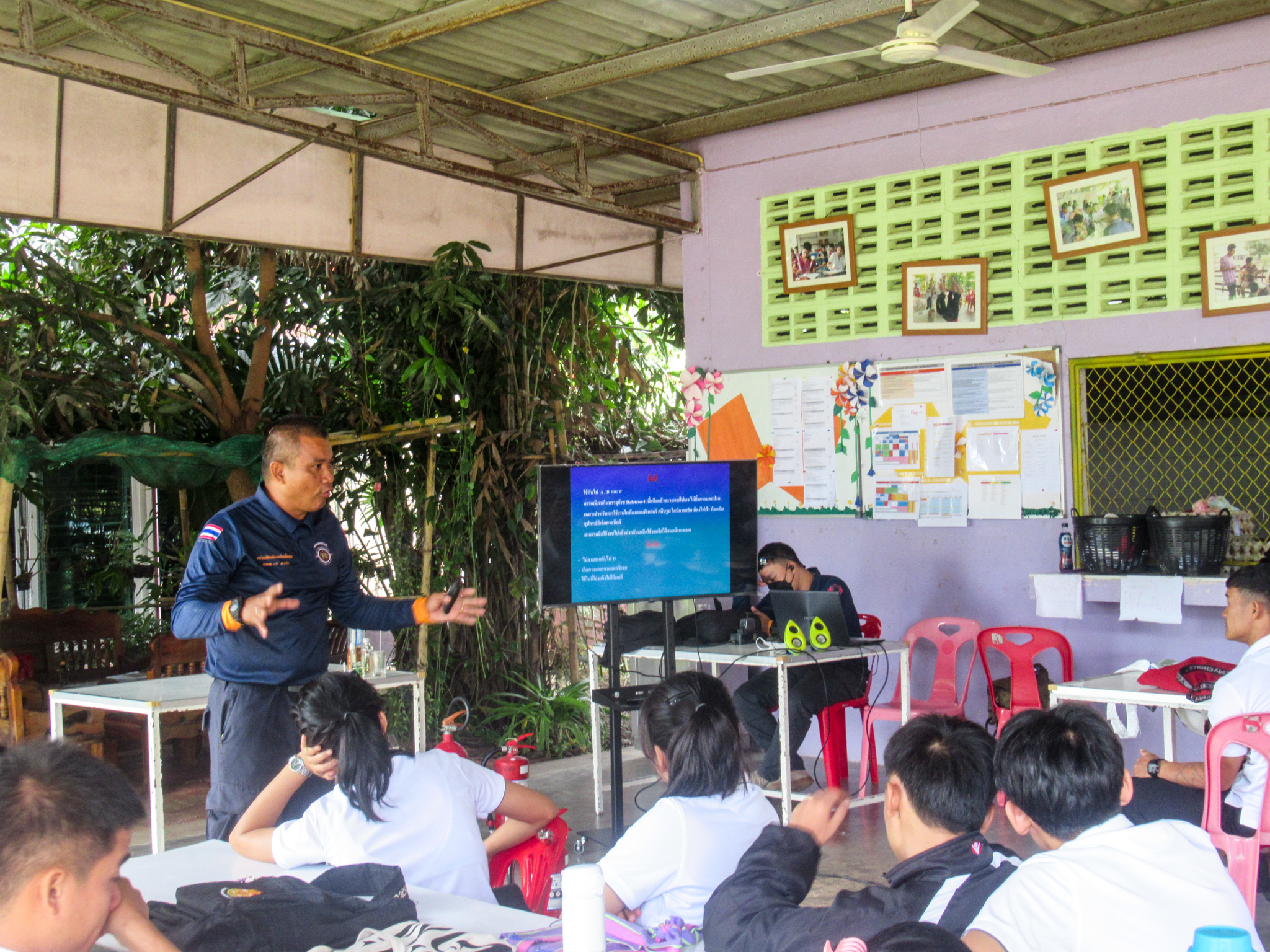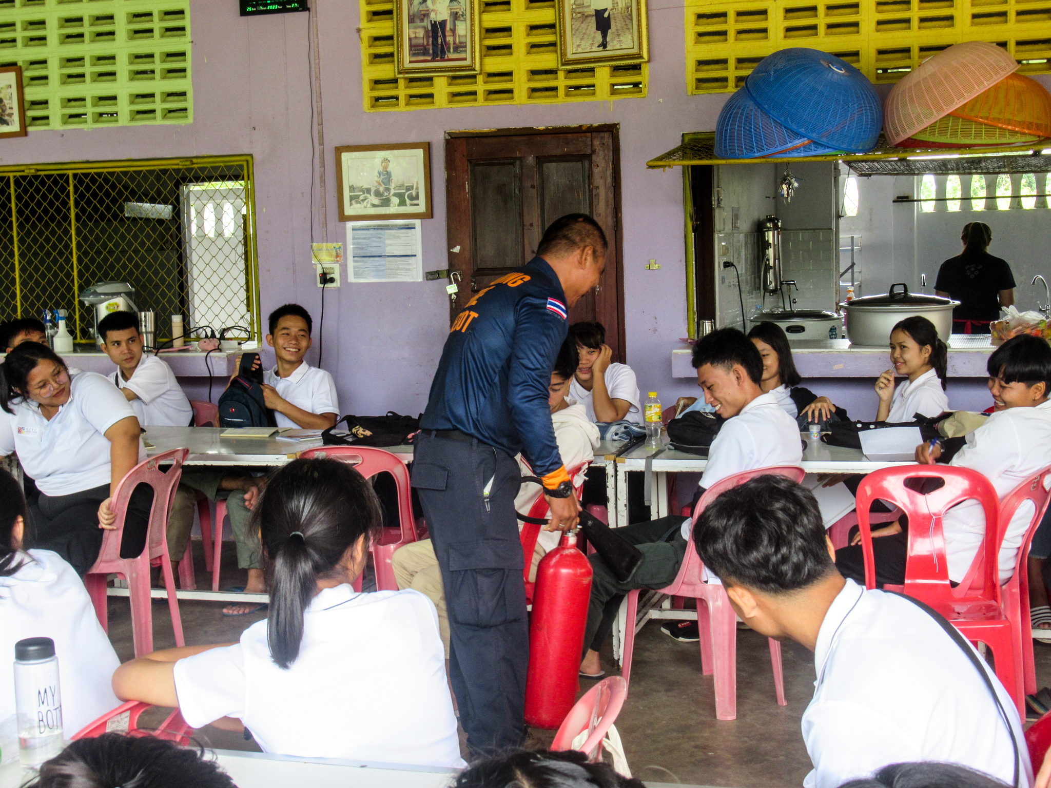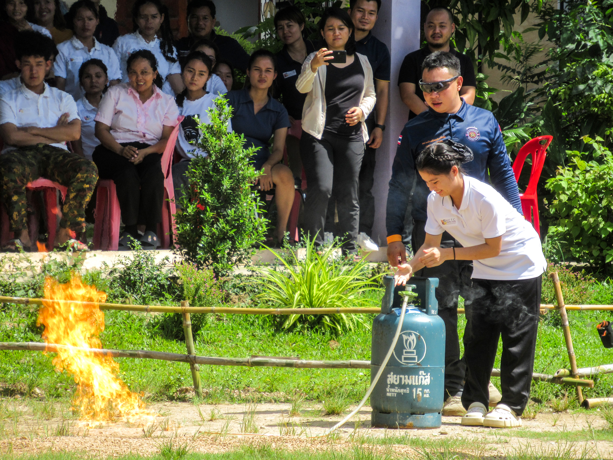 วันที่ 25 กรกฎาคม 2566 เวลา 08.00 - 17.00 น. เจ้าหน้าที่หน่วยฝึก ดพต./ดพฝ.-ร482 ออกฝึกอบรม เรื่อง การดับเพลิงขั้นต้น การฝึกซ้อมดับเพลิง และฝึกซ้อมอพยพหนีไฟ ให้กับ ศูนย์ฝึกภัตตาคารและการโรงแรม HCTC ตามโครงการอบรมเชิงปฏิบัติการเรื่องการอบรมดับเพลิงเบื้องต้น ประจำปี 2566 โดยการจัดให้มีการฝึกอบรมการป้องกันและระงับอัคคีภัย การดับเพลิงเบื้องต้นและการใช้ถังเคมีดับเพลิง โดยมีการให้ความรู้เกี่ยวกับ เรื่อง แผนการดับเพลิงและวิธีการดับเพลิงของ สถานประกอบการ ฝึกซ้อมดับเพลิง และได้ให้ความรู้เกี่ยวกับการป้องกันระงับอัคคีภัย องค์ประกอบของการเกิดไฟ ประเภทของไฟ ความรู้เกี่ยวกับสารเคมี การใช้ถังดับเพลิงเคมี พร้อมสาธิตการฝึกปฏิบัติ การใช้อุปกรณ์เครื่องมือการดับเพลิงและบรรเทาสาธารณภัย การใช้อุปกรณ์ดับเพลิงอย่างถูกวิธี เลือกใช้ ความปลอดภัย การแนะนำอุปกรณ์ชุดผจญเพลิง เป็นต้น
