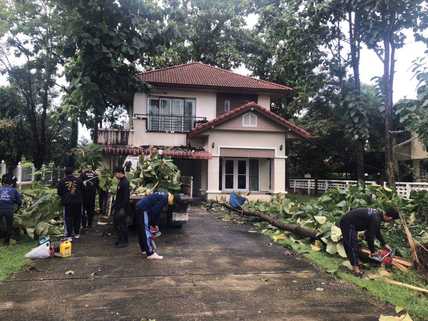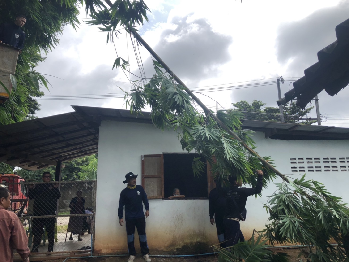 วันที่ 11 สิงหาคม 2566 เวลา 09.00 น.ฝ่ายป้องกันฯ นครแม่สอด ได้รับคำร้องขอความอนุเคราะห์ตัดต้นไม้ภายในบ้านพักผู้พิพากษาตำบลแม่สอด อำเภอแม่สอด จังหวัดตาก เนื่องจากต้นไม้บริเวณบ้านพักผู้เหนือหลังคา อาจก่อให้เกิดอันตรายได้ จึงนำรถยนต์บรรทุก 6 ล้อ และอุปกรณ์ พร้อมประสานรถกระเช้าไฟฟ้าเข้าร่วมดำเนินการจุดดังกล่าว โดยทำการใช้มีด เลื่อยโซ่ยนต์ ทำการตัดจนแล้วเสร็จ พร้อมยกใส่รถยนต์บรรทุกดำเนินการต่อไป เพื่อความเป็นระเบียบเรียบร้อย ความปลอดภัยแก่บ้านเรือนประชาชนที่อาศัยอยู่บริเวณดังกล่าว
