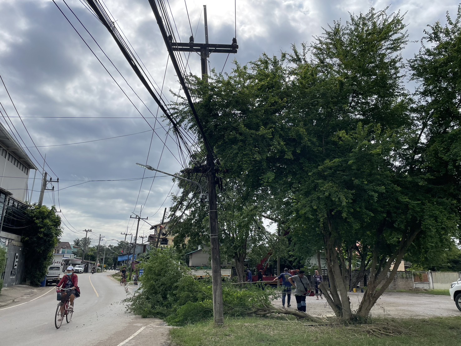วันที่ 29 สิงหาคม 2566 เวลา 09.00 - 12.30 น.ฝ่ายป้องกันฯ นครแม่สอด ได้รับคำร้องขอความอนุเคราะห์ตัดต้นไม้ หน้า ps gym ชุมชนร่วมแรง ตำบลแม่สอด อำเภอแม่สอด จังหวัดตาก เนื่องจากกิ่งไม้พาดผ่านสายไฟฟ้า และล้ำถนน จึงนำรถยนต์บรรทุก 6 ล้อ และอุปกรณ์ พร้อมประสานรถกระเช้าไฟฟ้าเข้าร่วมดำเนินการจุดดังกล่าว โดยทำการใช้มีด เลื่อยโซ่ยนต์ ทำการตัดจนแล้วเสร็จ พร้อมยกใส่รถยนต์บรรทุกดำเนินการต่อไป เพื่อความเป็นระเบียบเรียบร้อย ความปลอดภัยแก่บ้านเรือนประชาชนที่อาศัยอยู่บริเวณดังกล่าว