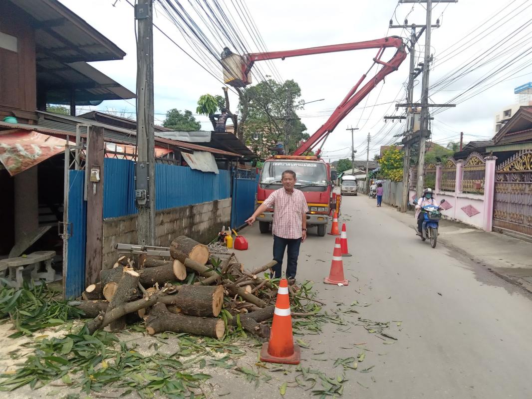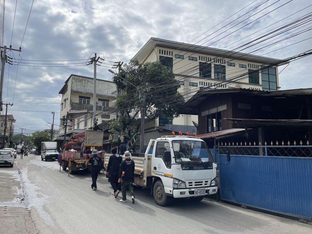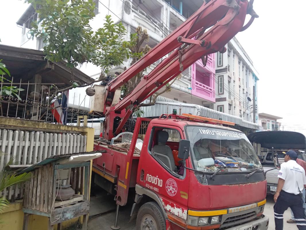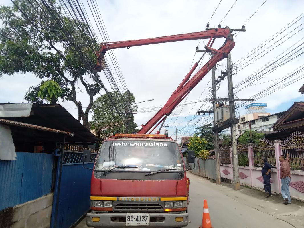 วันที่ 30 สิงหาคม 2566 เวลา 09.00 - 12.30 น.ฝ่ายป้องกันฯ นครแม่สอด ได้รับคำร้อง อิเล็กทรอนิกส์ (one stop service) ขอความอนุเคราะห์ตัดต้นไม้ สี่แยกร้านขายปลา ชุมชนบัวคูณ ตำบลแม่สอด อำเภอแม่สอด จังหวัดตาก เนื่องจากกิ่งไม้พาดผ่านสายไฟฟ้า และล้ำถนน จึงนำรถยนต์บรรทุก 6 ล้อ และอุปกรณ์ พร้อมประสานรถกระเช้าไฟฟ้าเข้าร่วมดำเนินการจุดดังกล่าว โดยทำการใช้มีด เลื่อยโซ่ยนต์ ทำการตัดจนแล้วเสร็จ พร้อมยกใส่รถยนต์บรรทุกดำเนินการต่อไป เพื่อความเป็นระเบียบเรียบร้อย ความปลอดภัยแก่บ้านเรือนประชาชนที่อาศัยอยู่บริเวณดังกล่าว