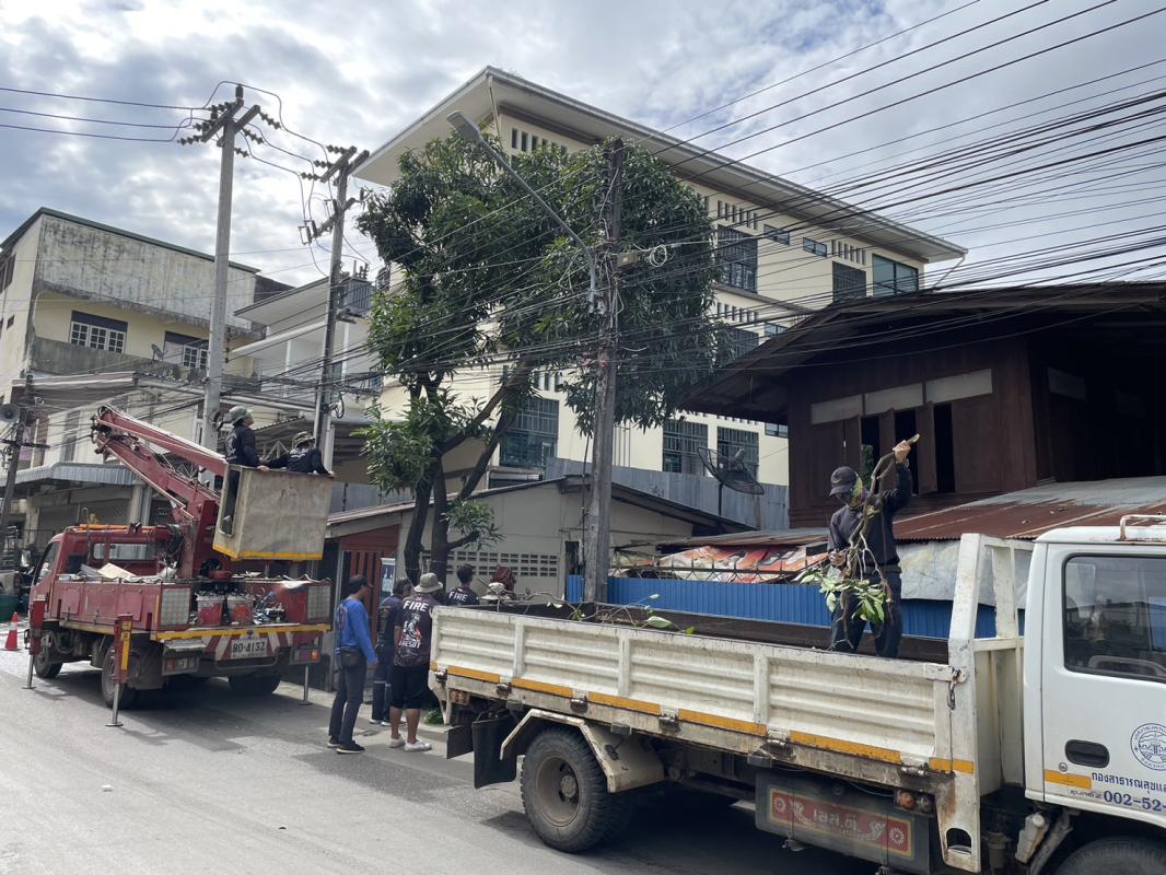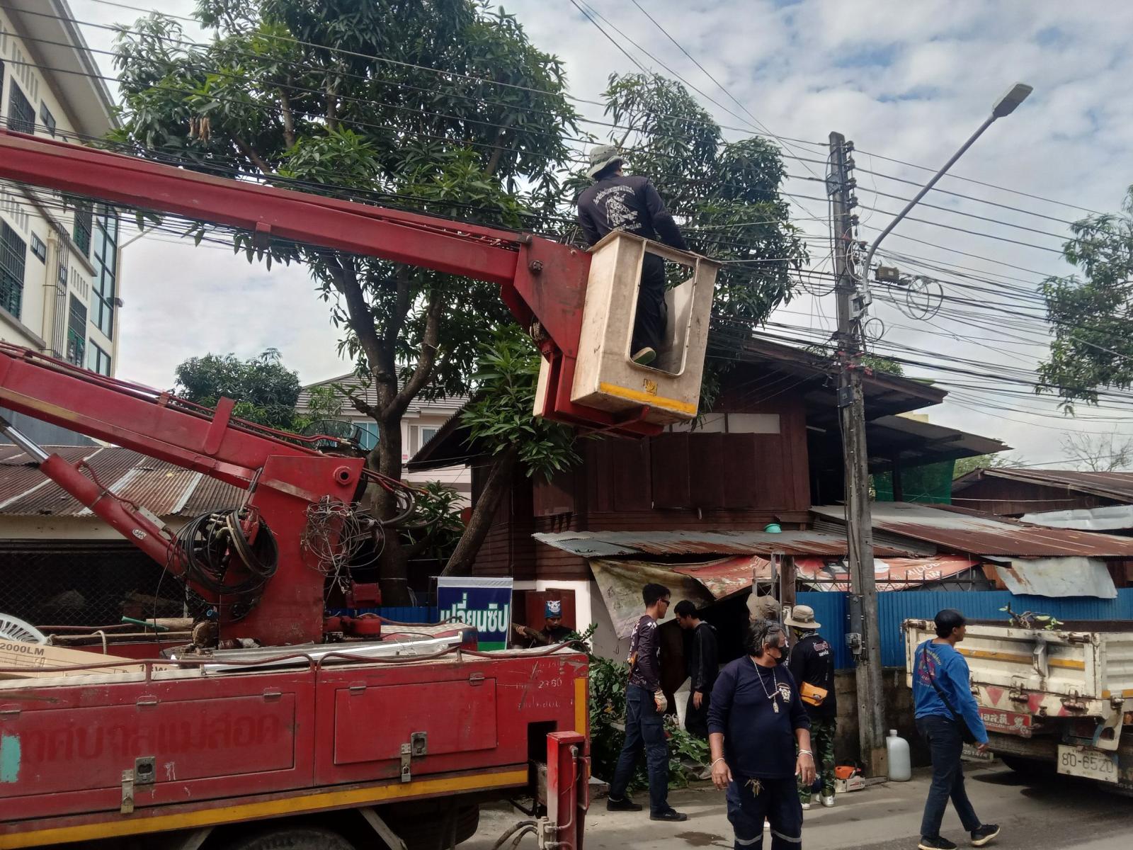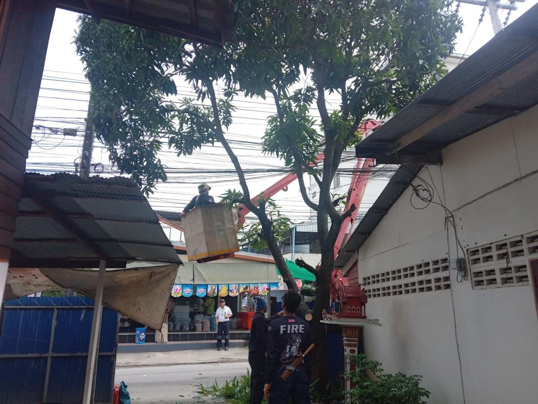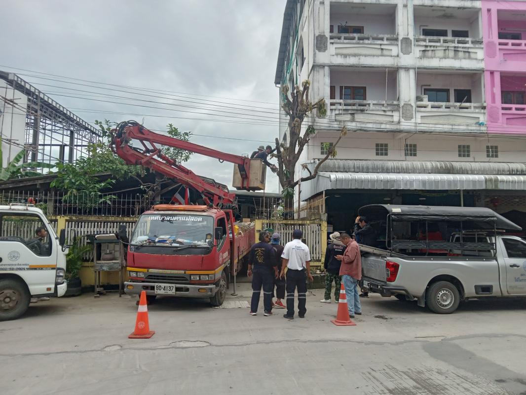 วันที่ 30 สิงหาคม 2566 เวลา 09.00 - 12.30 น.ฝ่ายป้องกันฯ นครแม่สอด ได้รับคำร้อง อิเล็กทรอนิกส์ (one stop service) ขอความอนุเคราะห์ตัดต้นไม้ สี่แยกร้านขายปลา ชุมชนบัวคูณ ตำบลแม่สอด อำเภอแม่สอด จังหวัดตาก เนื่องจากกิ่งไม้พาดผ่านสายไฟฟ้า และล้ำถนน จึงนำรถยนต์บรรทุก 6 ล้อ และอุปกรณ์ พร้อมประสานรถกระเช้าไฟฟ้าเข้าร่วมดำเนินการจุดดังกล่าว โดยทำการใช้มีด เลื่อยโซ่ยนต์ ทำการตัดจนแล้วเสร็จ พร้อมยกใส่รถยนต์บรรทุกดำเนินการต่อไป เพื่อความเป็นระเบียบเรียบร้อย ความปลอดภัยแก่บ้านเรือนประชาชนที่อาศัยอยู่บริเวณดังกล่าว