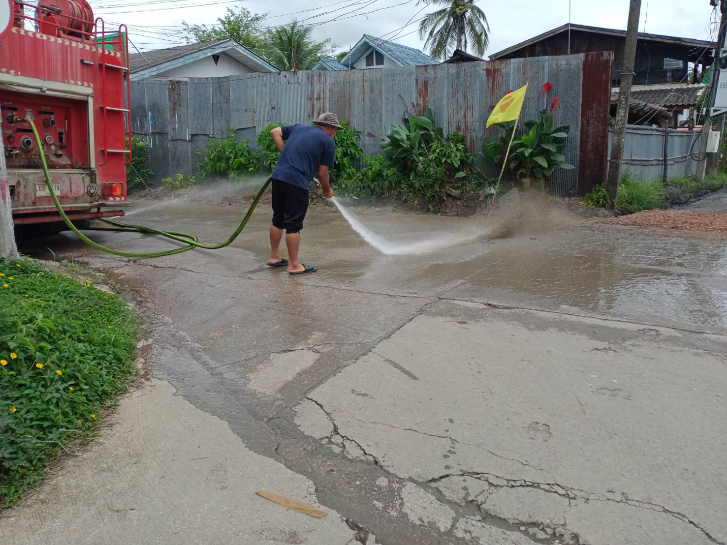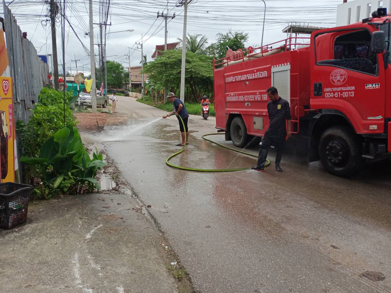 วันที่ 7 กันยายน 2566 ฝ่ายป้องกันฯ นครแม่สอด ได้รับคำร้องขอฉีดล้างถนน บริเวณซอยเข้าหมู่บ้านพรพระวอ อำเภอแม่สอด จังหวัดตาก จึงนำรถยนต์บรรทุกน้ำดับเพลิง จำนวน 1 คัน พร้อมเจ้าหน้าที่ ออกดำเนินการฉีดล้างถนนพื้นที่ดังกล่าว เนื่องจากมีเศษ หิน ดิน ทราบ บริเวณถนน เพื่อเป็นการป้องกันเกิดอุบัติเหตุต่อประชาชนที่สัญจรไปมา