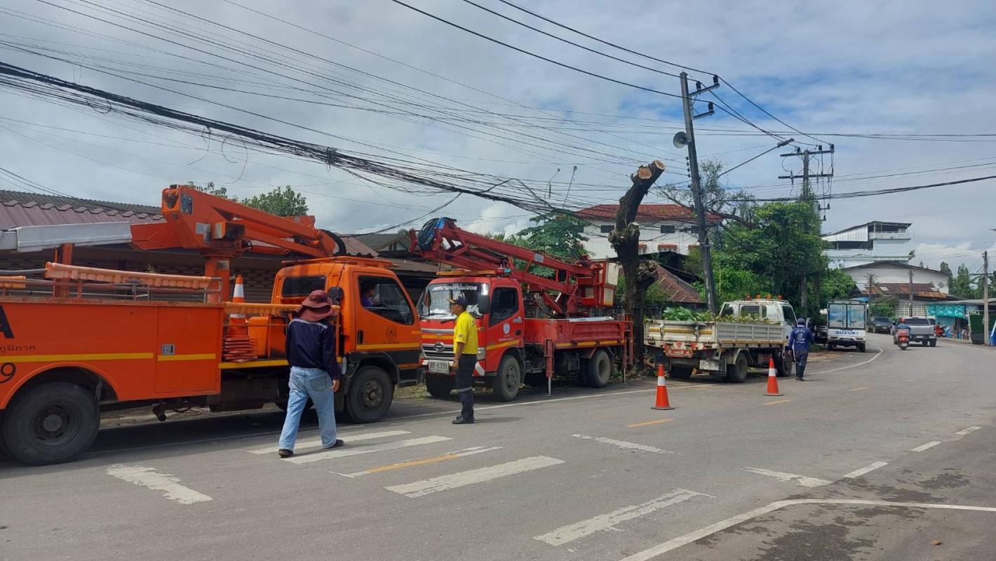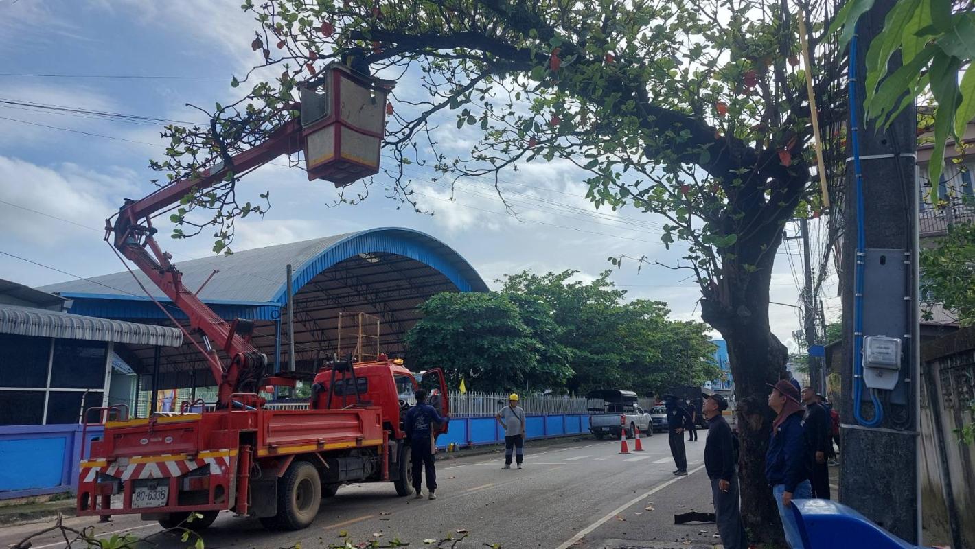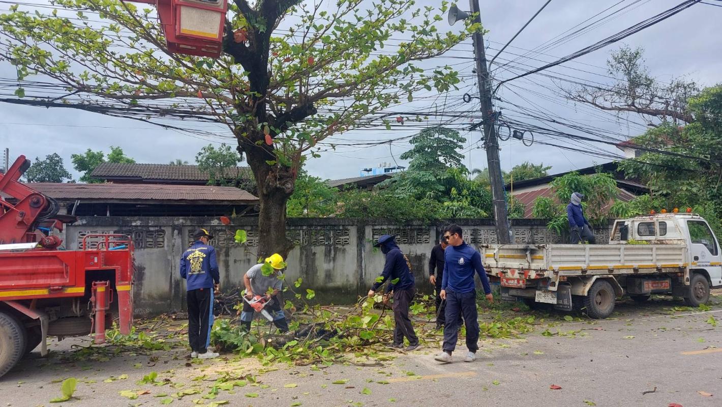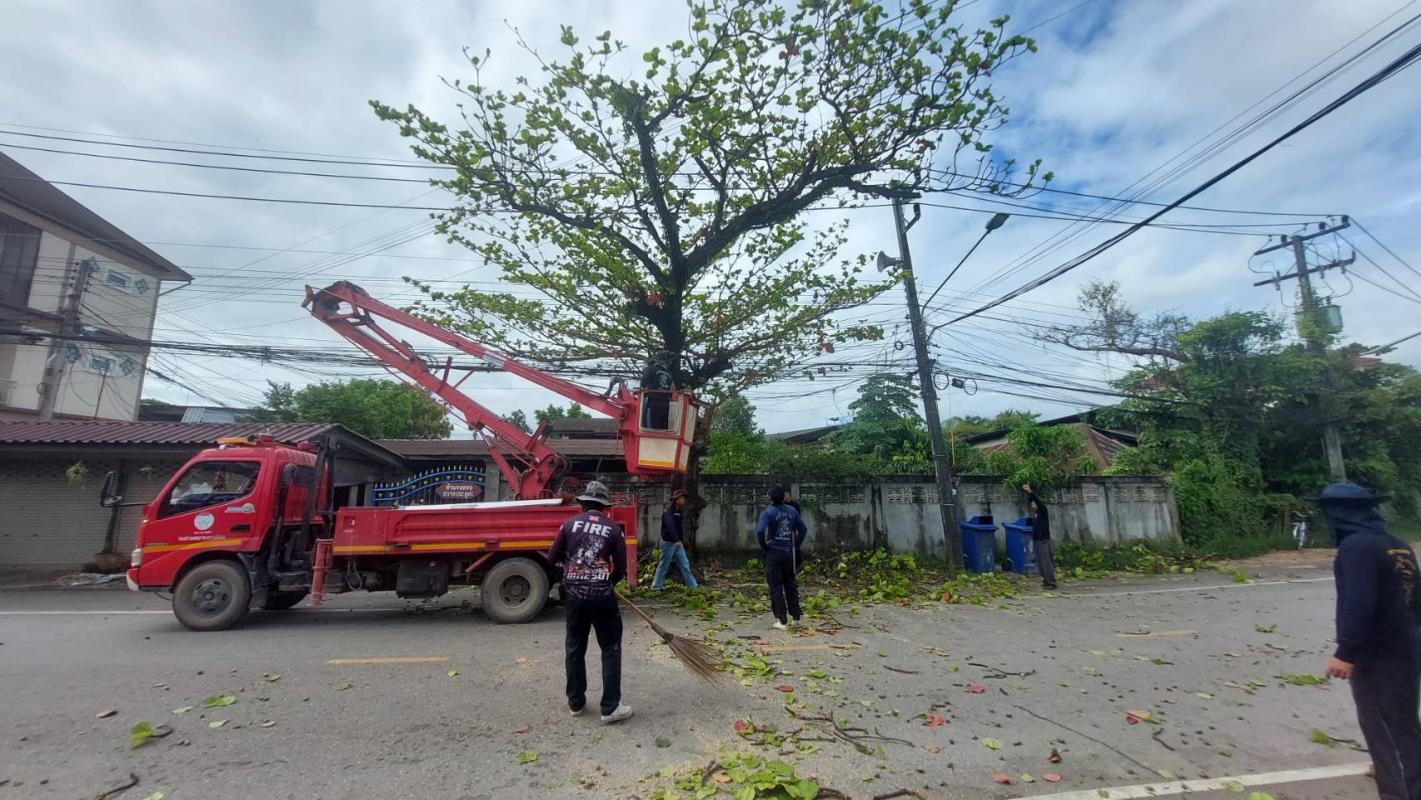 วันที่ 18 กันยายน 2566 เวลา 09.00 - 11.30 น. น.ฝ่ายป้องกันฯ นครแม่สอด ได้รับคำร้อง ขอความอนุเคราะห์ตัดต้นไม้หน้าบ้านประชาชน ตำบลแม่สอด อำเภอแม่สอด จังหวัดตาก เนื่องจากมีกิ่งไม้พาดผ่านสายไฟฟ้า เกรงว่าจะเกิดเหตุอันตราย จึงนำรถยนต์บรรทุก 6 ล้อ และอุปกรณ์ รถกระเช้า กองช่าง ดำเนินการร่วมจุดดังกล่าว โดยทำการใช้มีด เลื่อยโซ่ยนต์ ทำการตัดจนแล้วเสร็จ พร้อมยกใส่รถยนต์บรรทุกดำเนินการต่อไป เพื่อความเป็นระเบียบเรียบร้อย ความปลอดภัยแก่บ้านเรือนประชาชนที่อาศัยอยู่บริเวณดังกล่าว