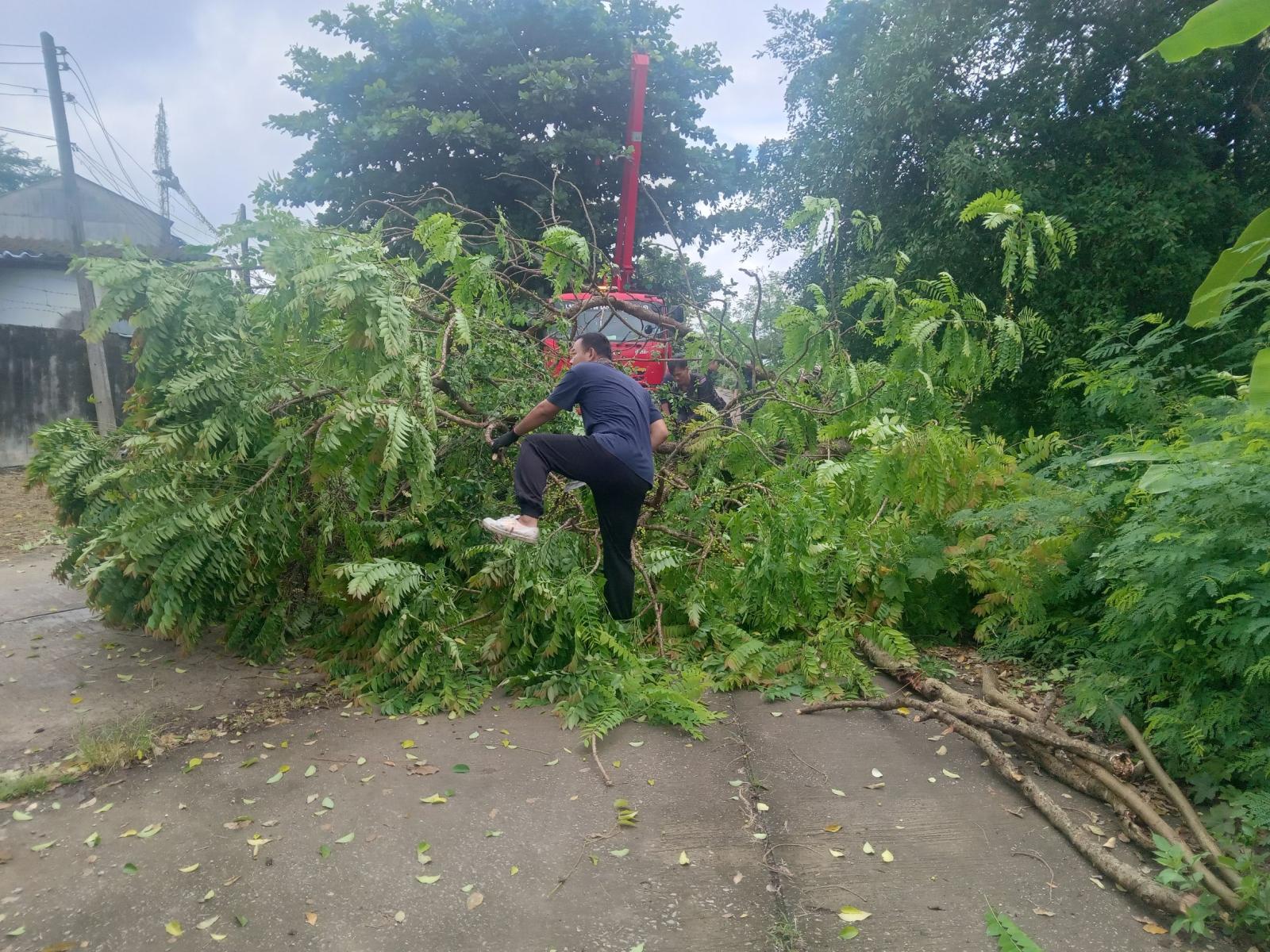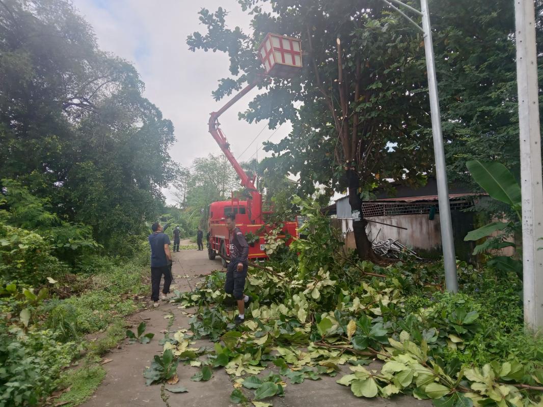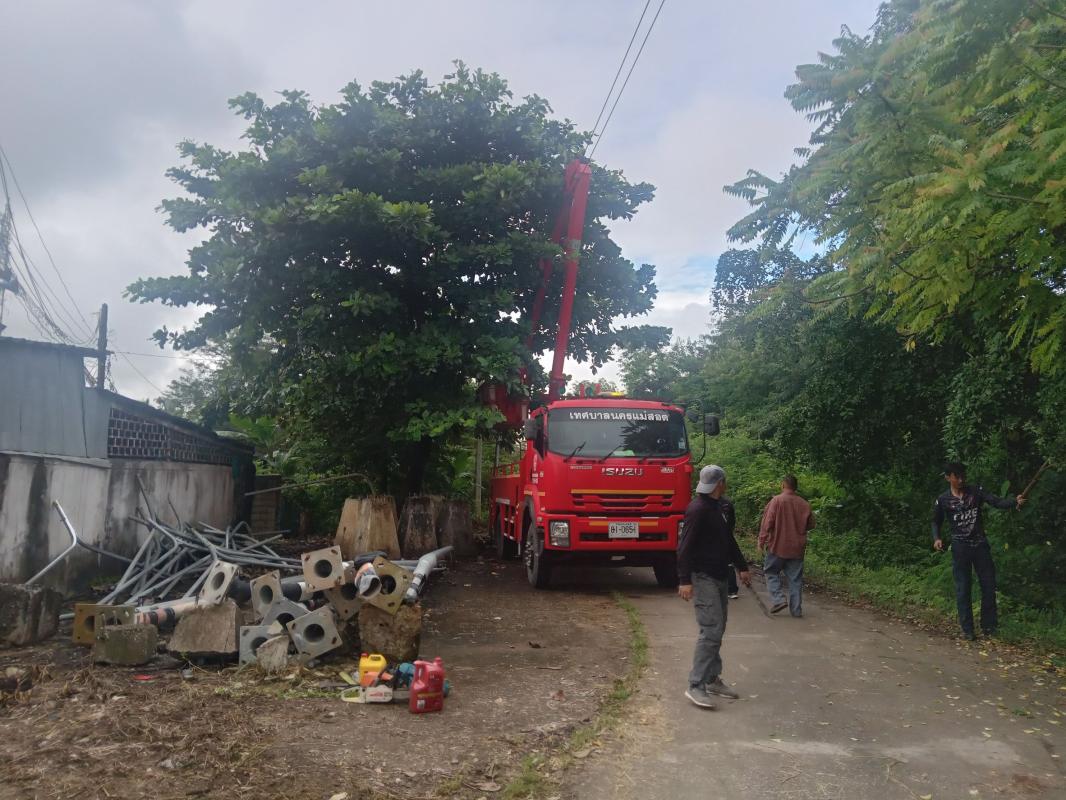 วันที่ 5 ตุลาคม 2566 เวลา 09.00 น.ฝ่ายป้องกันฯ นครแม่สอด ได้รับคำร้อง ขอความอนุเคราะห์ตัดต้นไม้ บริเวณหลังอู่ช่างลือ อำเภอแม่สอด จังหวัดตาก เนื่องจากมีกิ่งไม้พาดผ่านสายไฟฟ้า เกรงว่าจะเกิดเหตุอันตราย จึงนำรถยนต์บรรทุก 6 ล้อ และอุปกรณ์ รถกระเช้า กองช่าง ดำเนินการร่วมจุดดังกล่าว โดยทำการใช้มีด เลื่อยโซ่ยนต์ ทำการตัดจนแล้วเสร็จ พร้อมยกใส่รถยนต์บรรทุกดำเนินการต่อไป เพื่อความเป็นระเบียบเรียบร้อย ความปลอดภัยแก่บ้านเรือนประชาชนที่อาศัยอยู่บริเวณดังกล่าว