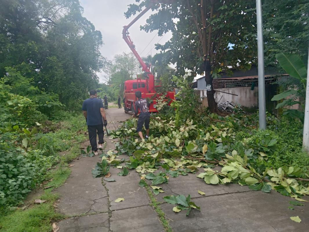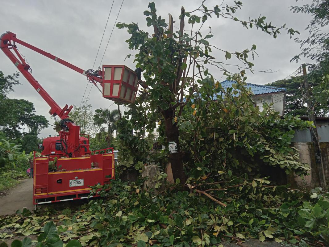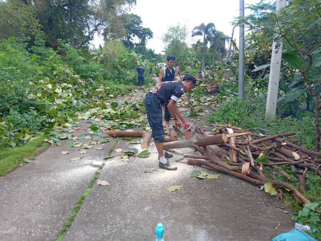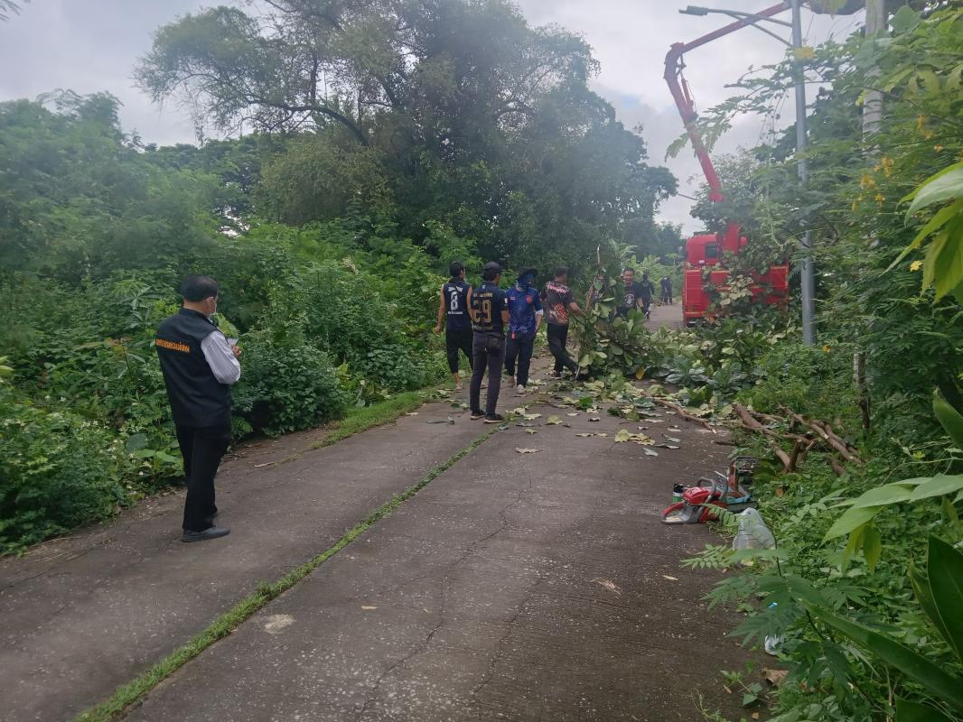 วันที่ 5 ตุลาคม 2566 เวลา 09.00 น.ฝ่ายป้องกันฯ นครแม่สอด ได้รับคำร้อง ขอความอนุเคราะห์ตัดต้นไม้ บริเวณหลังอู่ช่างลือ อำเภอแม่สอด จังหวัดตาก เนื่องจากมีกิ่งไม้พาดผ่านสายไฟฟ้า เกรงว่าจะเกิดเหตุอันตราย จึงนำรถยนต์บรรทุก 6 ล้อ และอุปกรณ์ รถกระเช้า กองช่าง ดำเนินการร่วมจุดดังกล่าว โดยทำการใช้มีด เลื่อยโซ่ยนต์ ทำการตัดจนแล้วเสร็จ พร้อมยกใส่รถยนต์บรรทุกดำเนินการต่อไป เพื่อความเป็นระเบียบเรียบร้อย ความปลอดภัยแก่บ้านเรือนประชาชนที่อาศัยอยู่บริเวณดังกล่าว