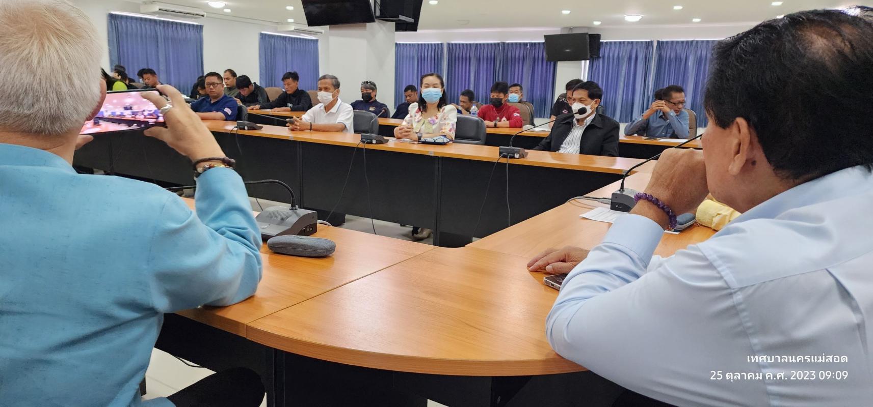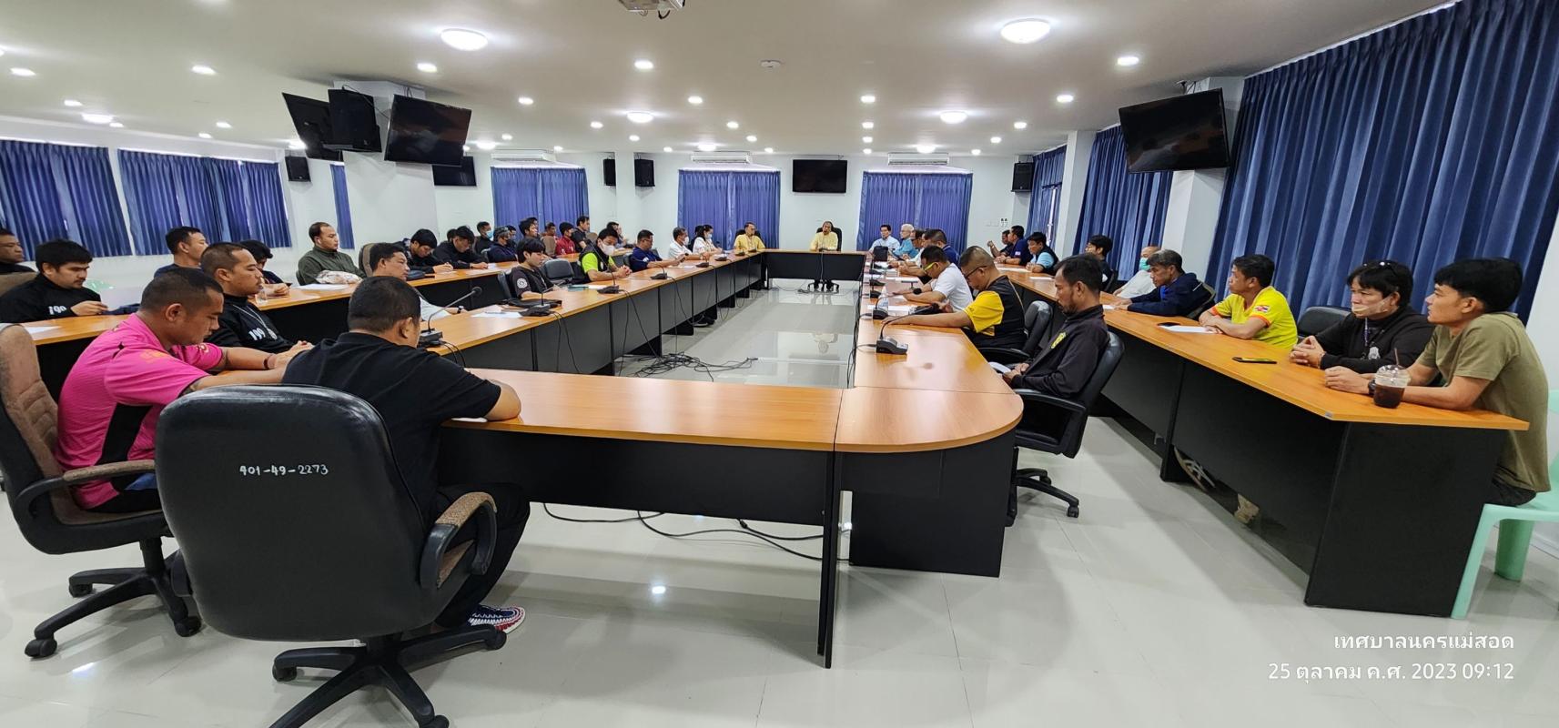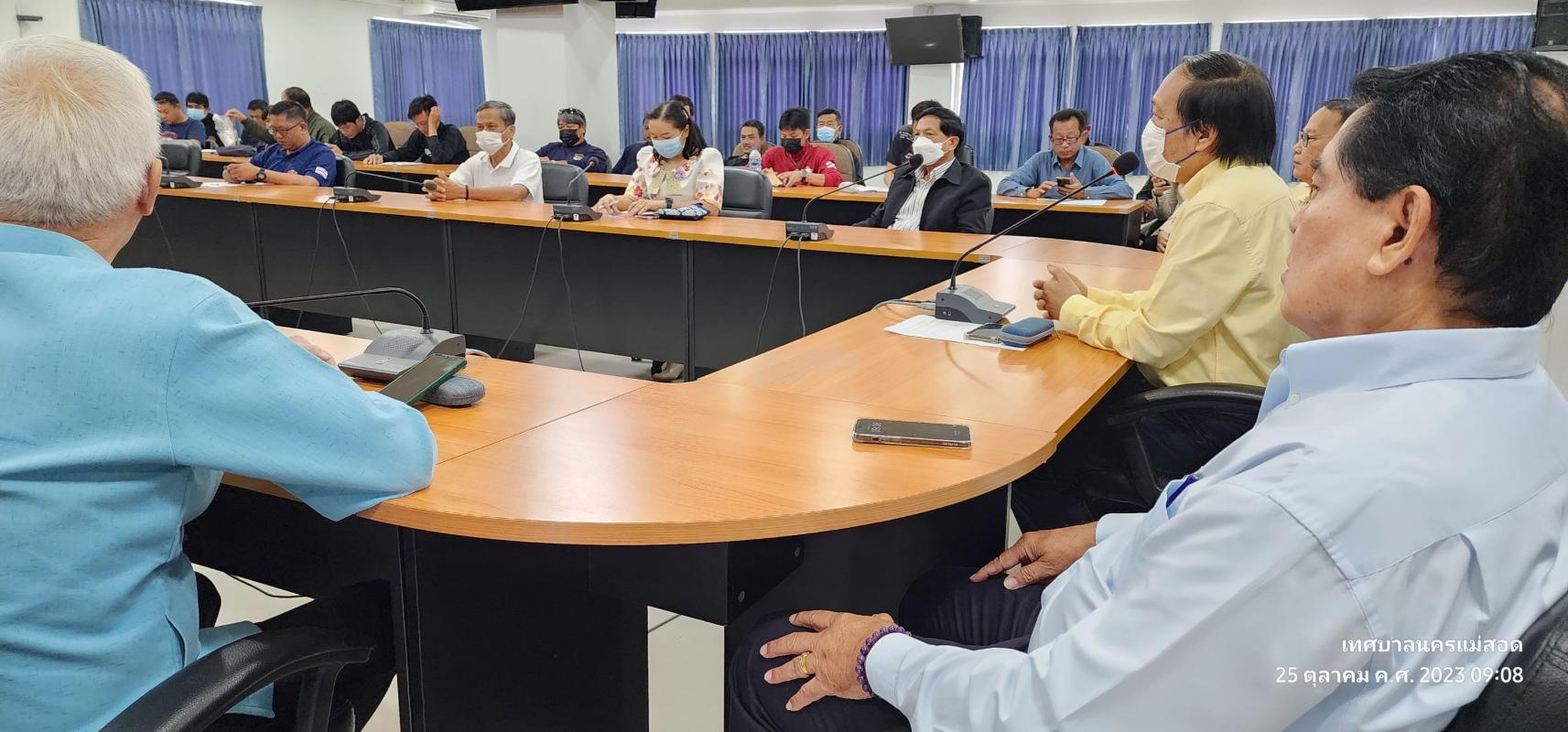 วันที่ 25 ตุลาคม 2566 เวลา 09.00 น. ว่าที่ร้อยตรี ประเสริฐ ปวงละคร นายกเทศมนตรีนครแม่สอด เป็นประธานการประชุมประจำเดือนตุลาคม 2566 ฝ่ายป้องกันและบรรเทาสาธารณภัย ทน.แม่สอด พร้อมคณะผู้บริหารเทศบาลฯ ณ ห้องประชุมเพชรเมืองฉอด ชั้น 3 อาคารศูนย์ป้องกันฯ เขตเศรษฐกิจพิเศษตาก