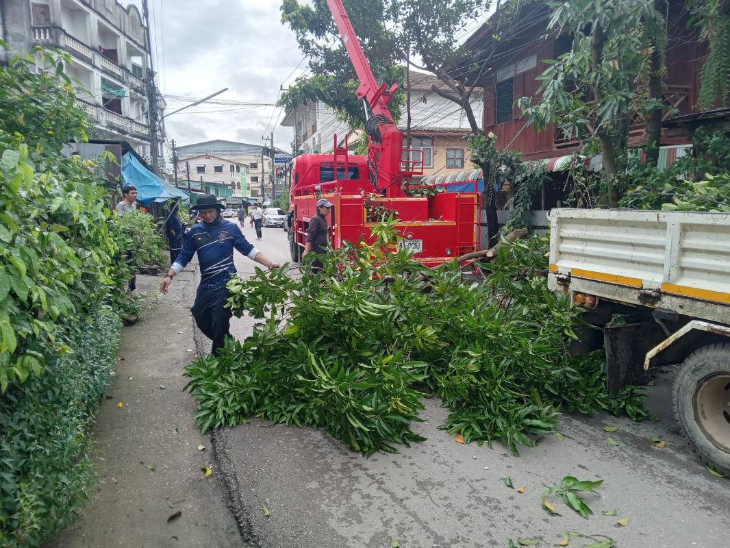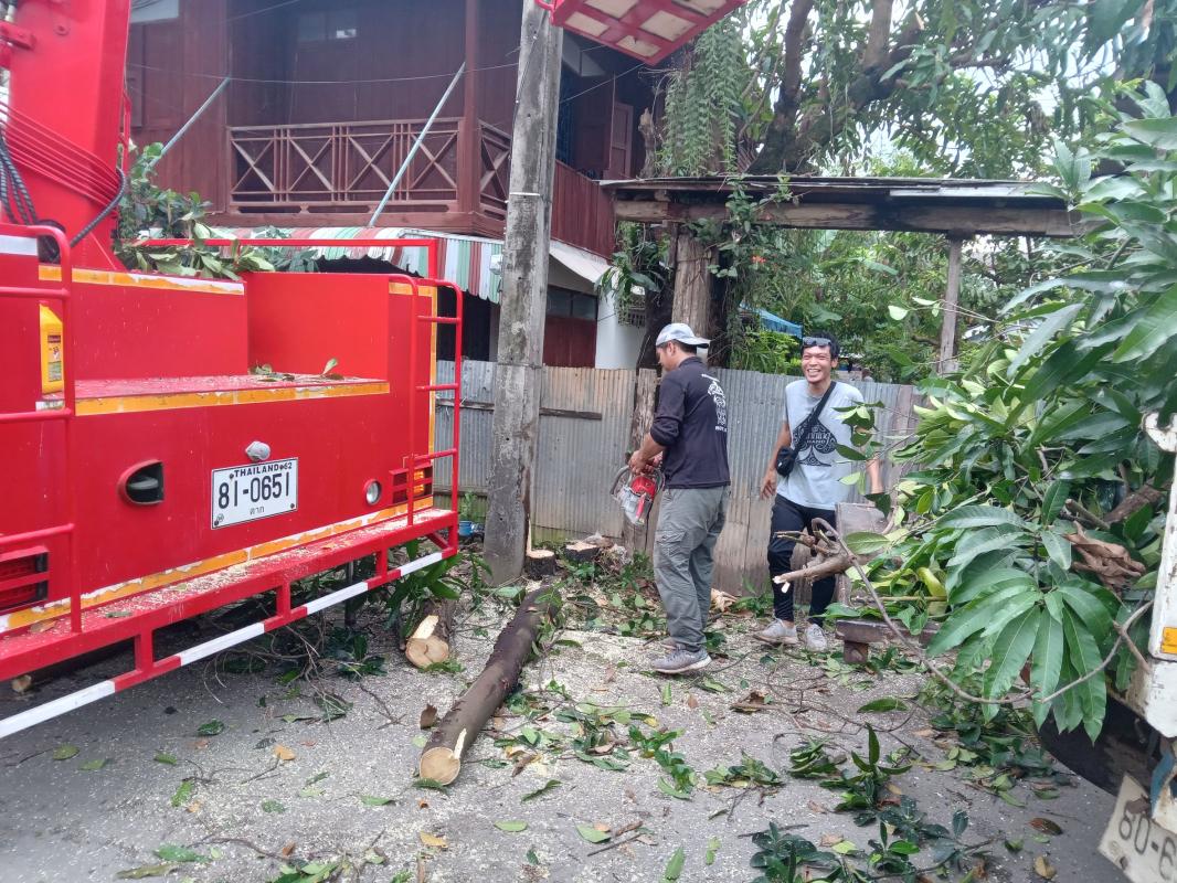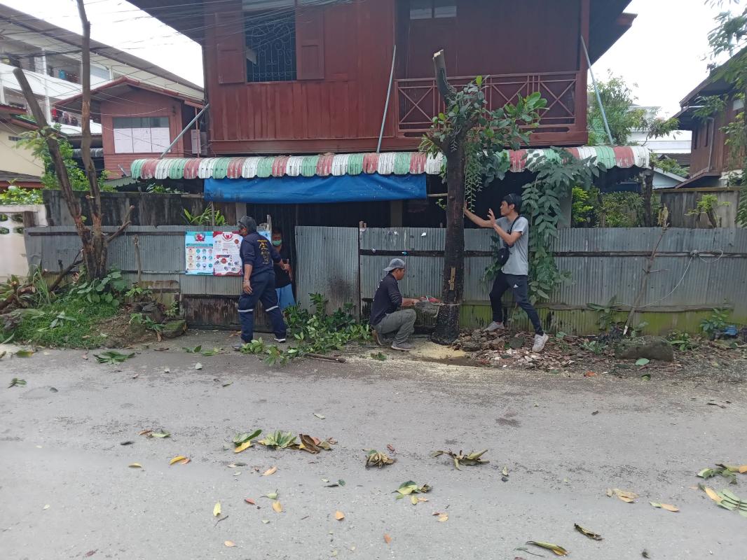 วันที่ 31 ตุลาคม 2566 เวลา 09.00 น.ฝ่ายป้องกันฯ นครแม่สอด ได้รับคำร้อง ขอความอนุเคราะห์ตัดต้นไม้ บริเวณซอยบ้านทุ่งซอยกลาง ชุมชนบ้านทุ่ง อำเภอแม่สอด จังหวัดตาก เนื่องจากกิ่งไม้พาดแนวสายไฟเกรงว่าจะเกิดเหตุอันตราย จึงนำรถยนต์บรรทุก 6 ล้อ และรถกระเช้าไฟฟ้า พร้อมอุปกรณ์ ดำเนินการจุดดังกล่าว โดยทำการใช้มีด เลื่อยโซ่ยนต์ ทำการตัดจนแล้วเสร็จ พร้อมยกใส่รถยนต์บรรทุกดำเนินการต่อไป เพื่อความเป็นระเบียบเรียบร้อย ความปลอดภัย บริเวณดังกล่าว