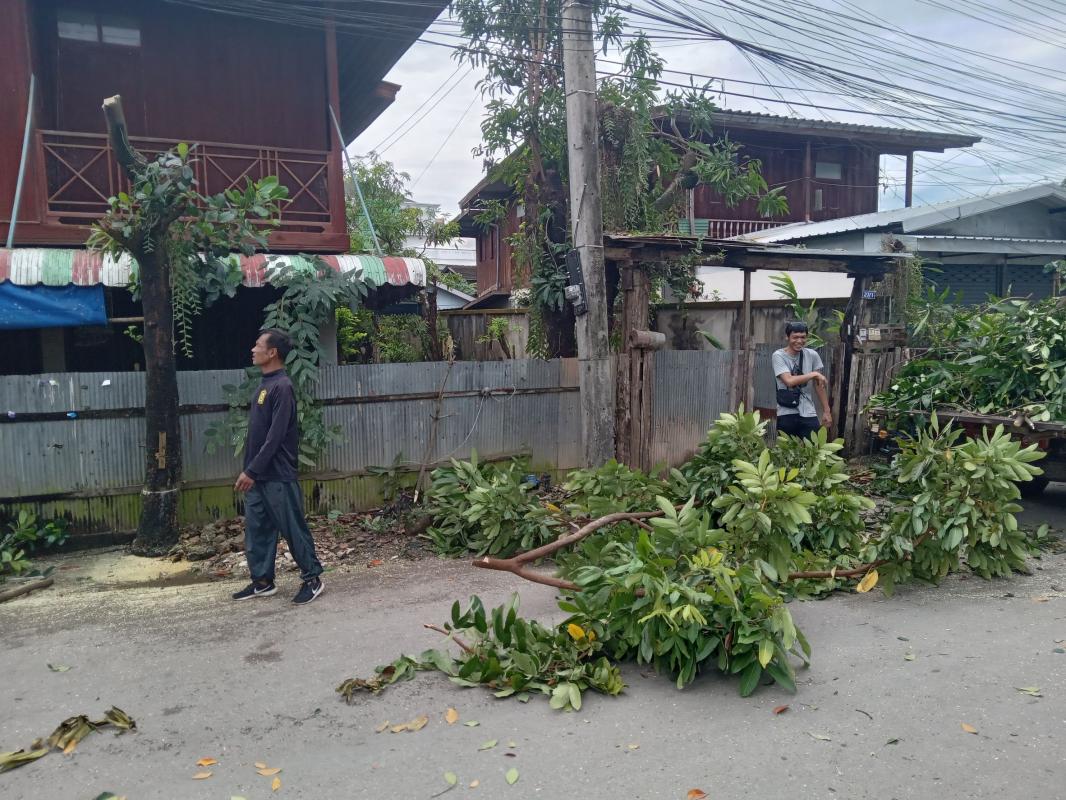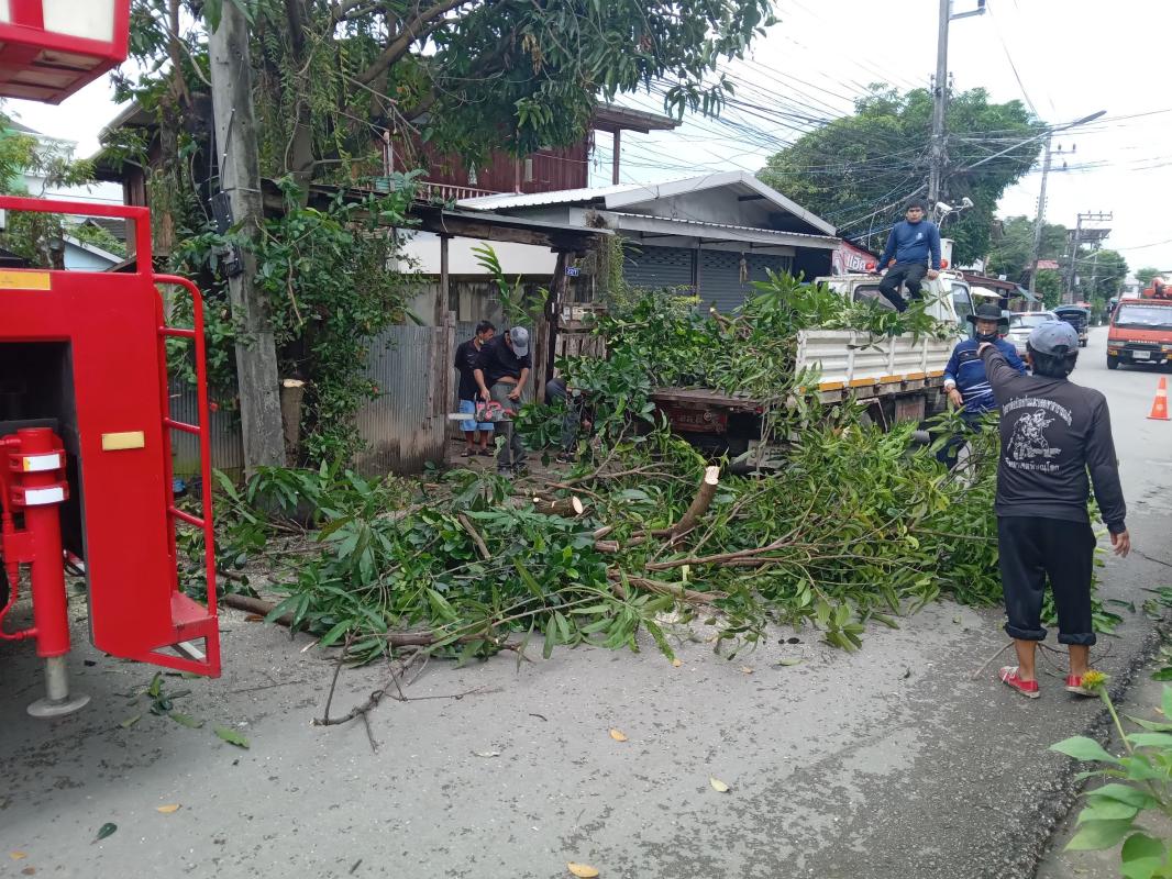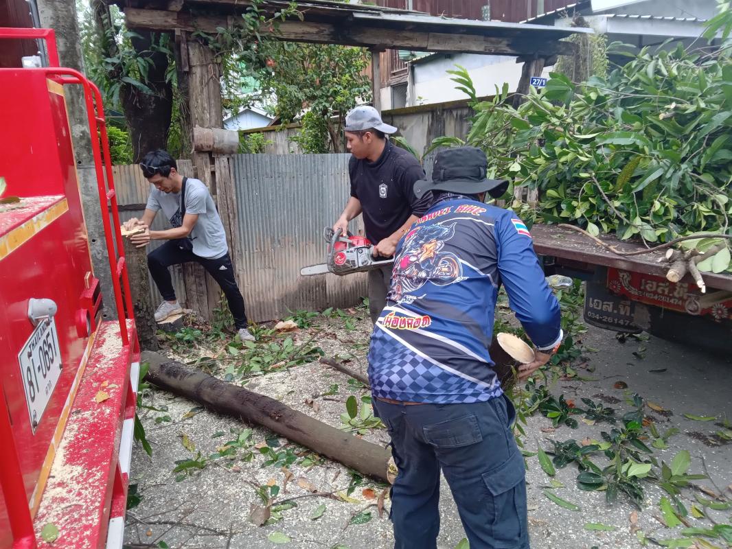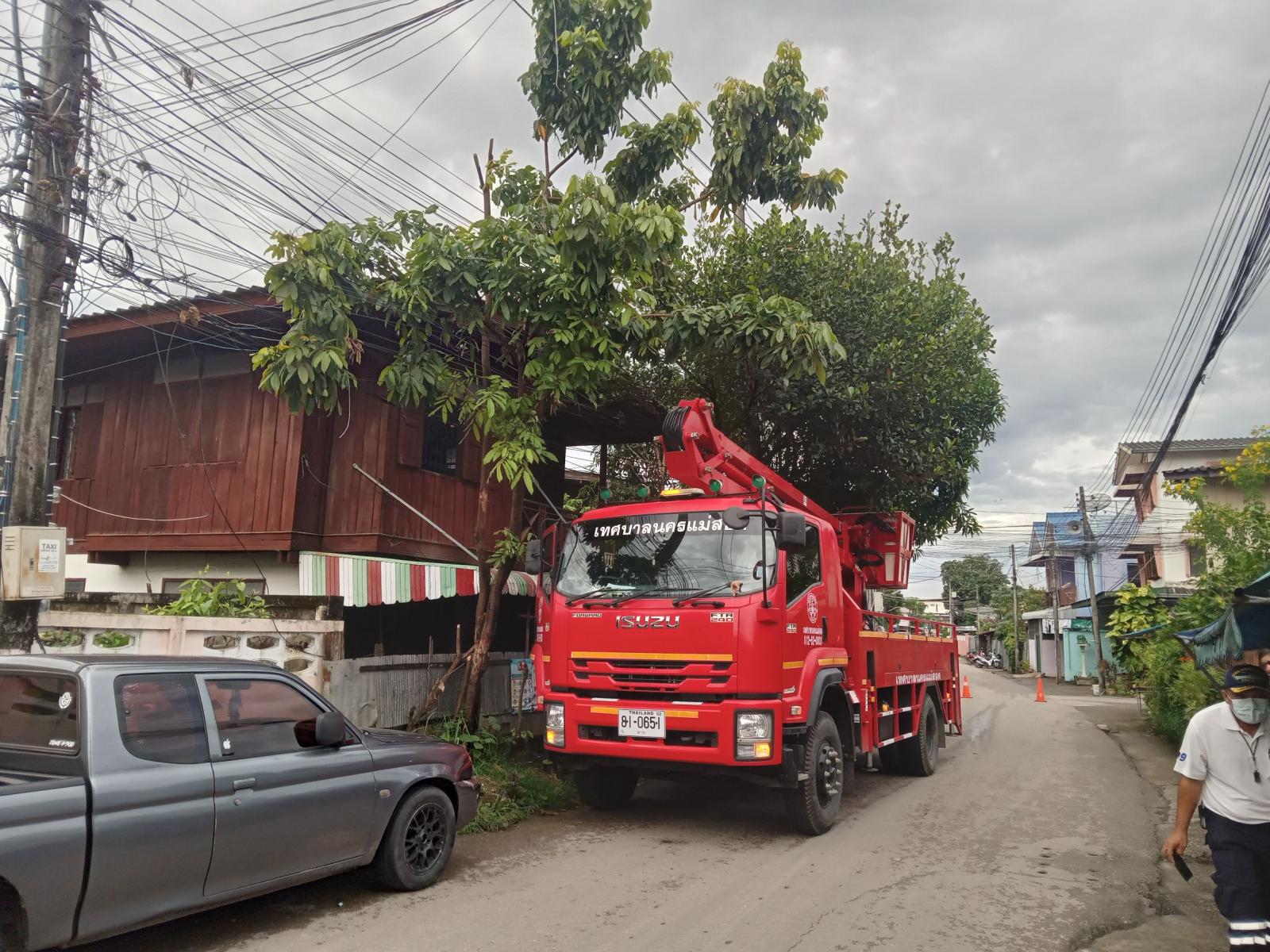 วันที่ 31 ตุลาคม 2566 เวลา 09.00 น.ฝ่ายป้องกันฯ นครแม่สอด ได้รับคำร้อง ขอความอนุเคราะห์ตัดต้นไม้ บริเวณซอยบ้านทุ่งซอยกลาง ชุมชนบ้านทุ่ง อำเภอแม่สอด จังหวัดตาก เนื่องจากกิ่งไม้พาดแนวสายไฟเกรงว่าจะเกิดเหตุอันตราย จึงนำรถยนต์บรรทุก 6 ล้อ และรถกระเช้าไฟฟ้า พร้อมอุปกรณ์ ดำเนินการจุดดังกล่าว โดยทำการใช้มีด เลื่อยโซ่ยนต์ ทำการตัดจนแล้วเสร็จ พร้อมยกใส่รถยนต์บรรทุกดำเนินการต่อไป เพื่อความเป็นระเบียบเรียบร้อย ความปลอดภัย บริเวณดังกล่าว