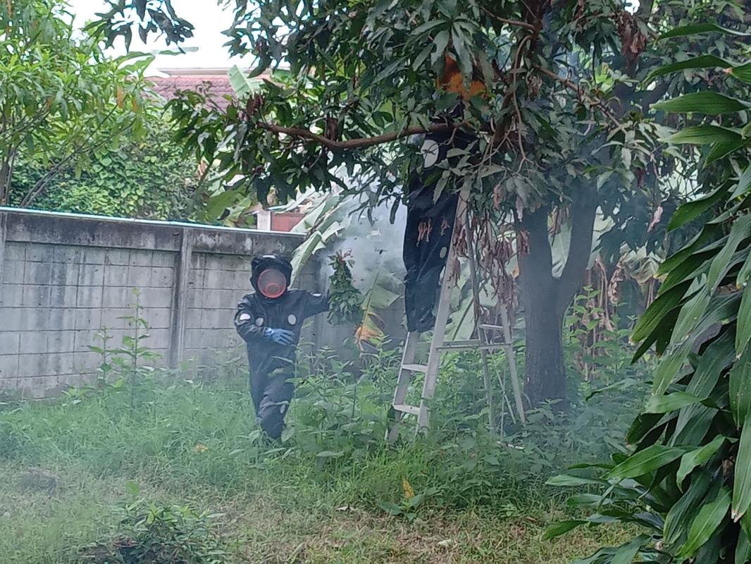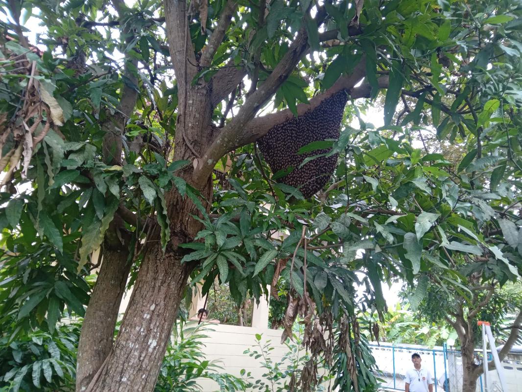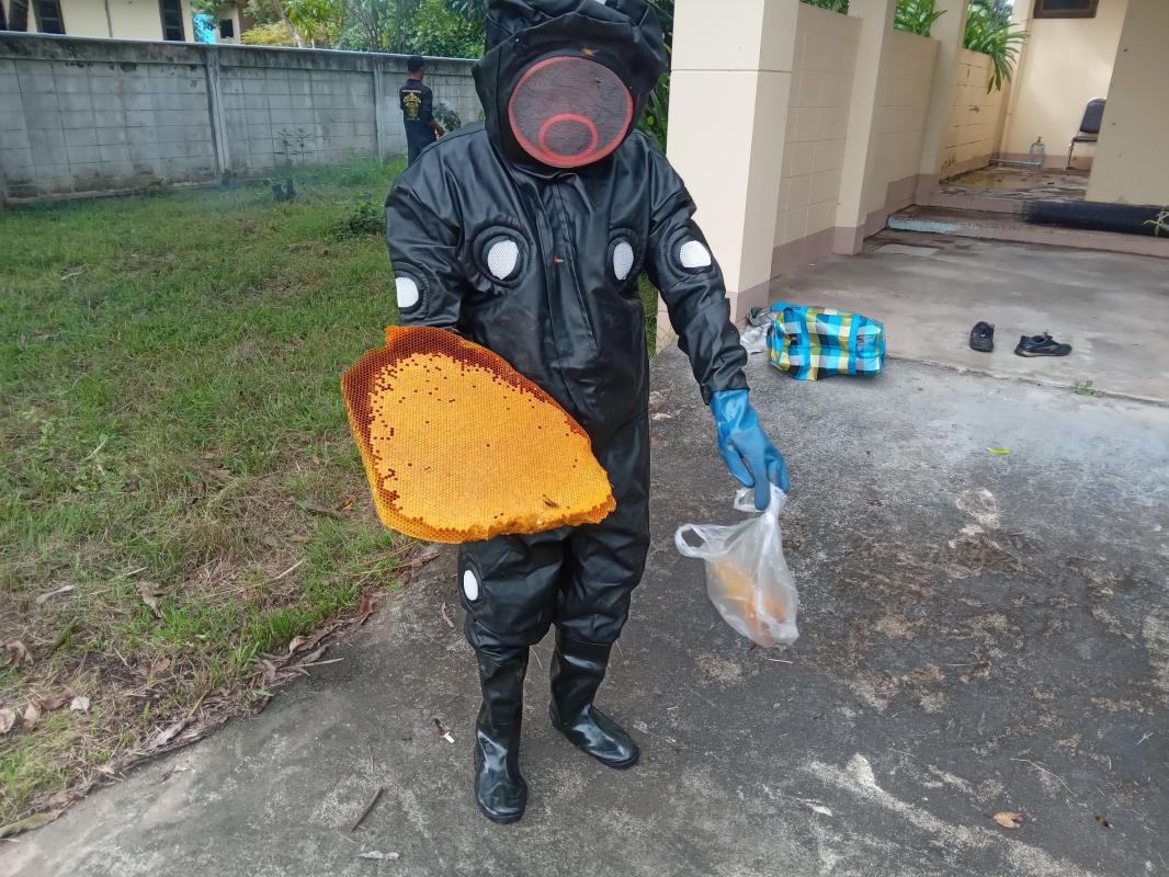 วันที่ 31 ตุลาคม 2566 ได้รับแจ้งให้ช่วยดำเนินการกำจัดรังผึ้ง ภายในบ้านพักผู้พิพากษา จังหวัดตาก รับแจ้งแล้วเตรียมอุปกรณ์พร้อมออกปฏิบัติหน้าที่เวลา 14.30 น. ได้นำรถยนต์ตรวจการณ์ พร้อมชุดป้อนกัน เข้าตรวจสอบพื้นที่ เมื่อถึงสถานที่รับแจ้งจึงดำเนินการเข้าตรวจสอบบริเวณบนต้นไม้ พบรังผึ้งขนาดใหญ่ เกรงว่าจะแตกรังและต่อชาวบ้าน จึงทำการใช้ควันไฟให้ผึ้งสลบ พร้อมดำเนินการจัดการต่อไป
