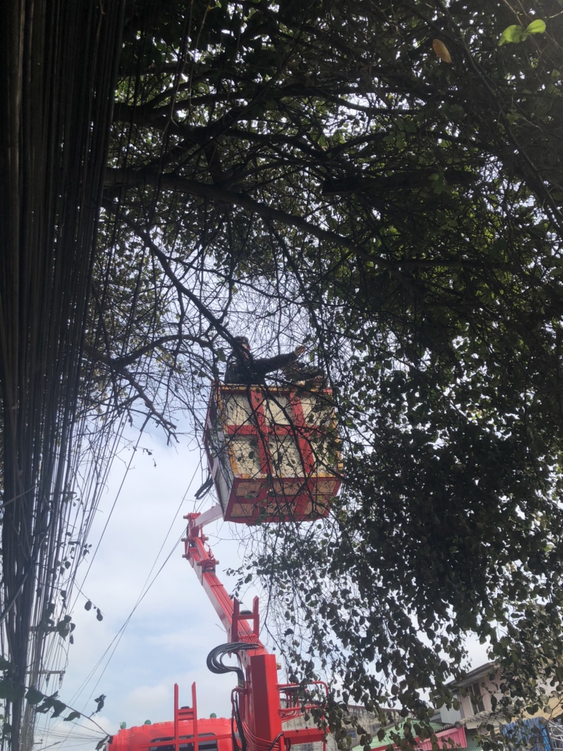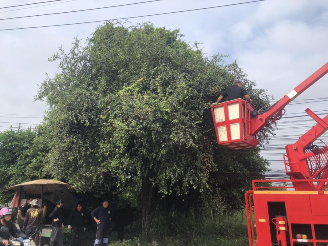 วันที่ 9 พฤศจิกายน 2566 เวลา 09.00 น.ฝ่ายป้องกันฯ นครแม่สอด ได้รับคำร้อง ขอความอนุเคราะห์ตัดต้นไม้ บริเวณหน้าไทยแสงทองบ้านทุ่ง อำเภอแม่สอด จังหวัดตาก เนื่องจากกิ่งไม้พาดแนวสายไฟเกรงว่าจะเกิดเหตุอันตราย จึงนำรถยนต์บรรทุก 6 ล้อ และรถกระเช้าไฟฟ้า พร้อมอุปกรณ์ ดำเนินการจุดดังกล่าว โดยทำการใช้มีด เลื่อยโซ่ยนต์ ทำการตัดจนแล้วเสร็จ พร้อมยกใส่รถยนต์บรรทุกดำเนินการต่อไป เพื่อความเป็นระเบียบเรียบร้อย ความปลอดภัย บริเวณดังกล่าว พร้อมงานเทศกิจดูแลการจราจร
