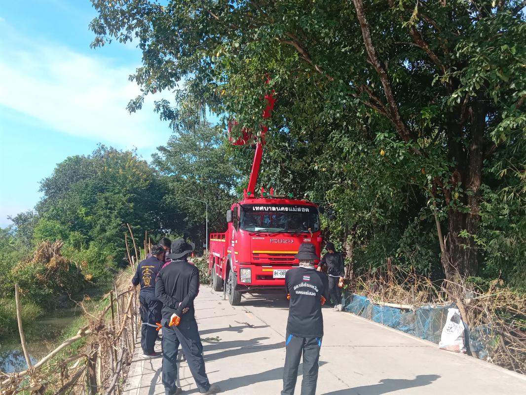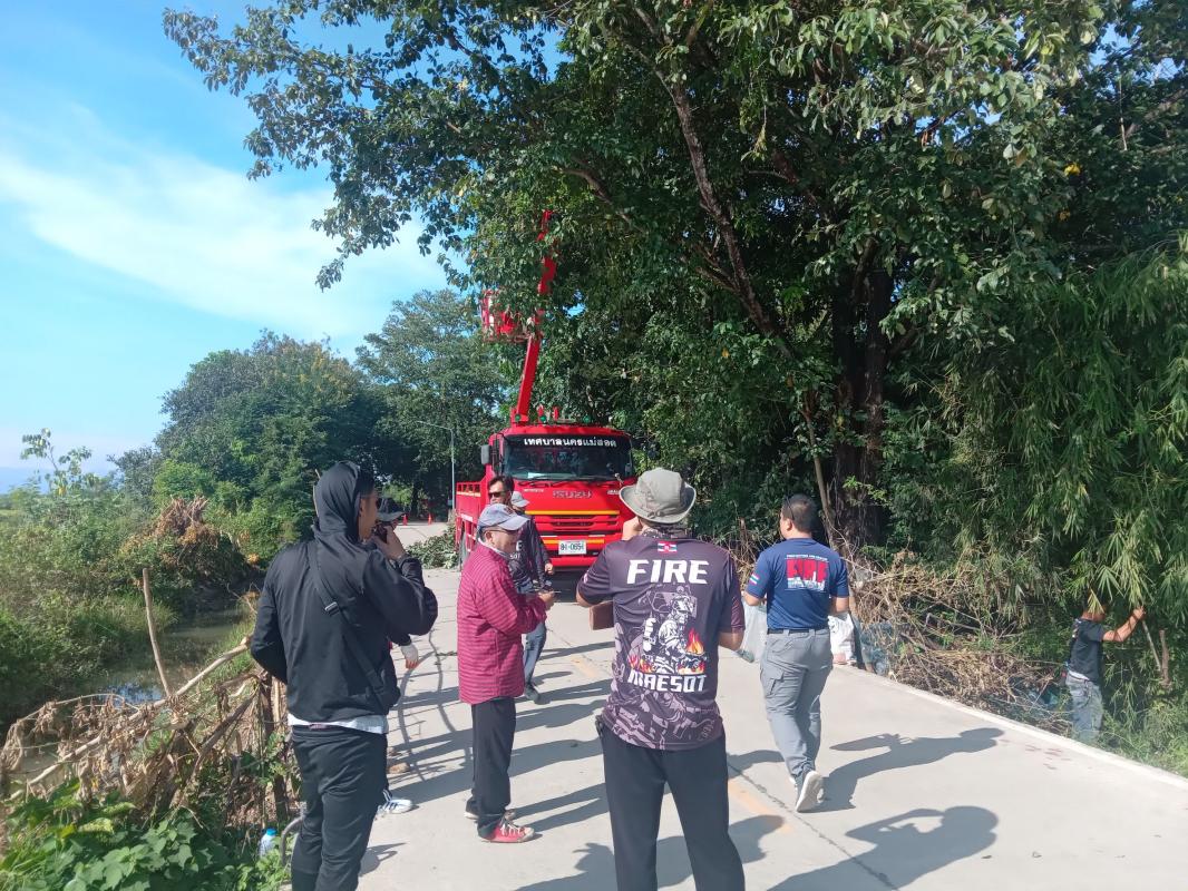 วันที่ 10 พฤศจิกายน 2566 เวลา 09.00 น.ฝ่ายป้องกันฯ นครแม่สอด ได้รับคำร้อง ขอความอนุเคราะห์ตัดต้นไม้ บริเวณทางชลประทาน อำเภอแม่สอด จังหวัดตาก เนื่องจากกิ่งไม้พาดสายไฟเกรงว่าจะเกิดเหตุอันตราย จึงนำรถยนต์บรรทุก 6 ล้อ และรถกระเช้าไฟฟ้า พร้อมอุปกรณ์ ดำเนินการจุดดังกล่าว โดยทำการใช้มีด เลื่อยโซ่ยนต์ ทำการตัดจนแล้วเสร็จ พร้อมยกใส่รถยนต์บรรทุกดำเนินการต่อไป เพื่อความเป็นระเบียบเรียบร้อย ความปลอดภัย บริเวณดังกล่าว