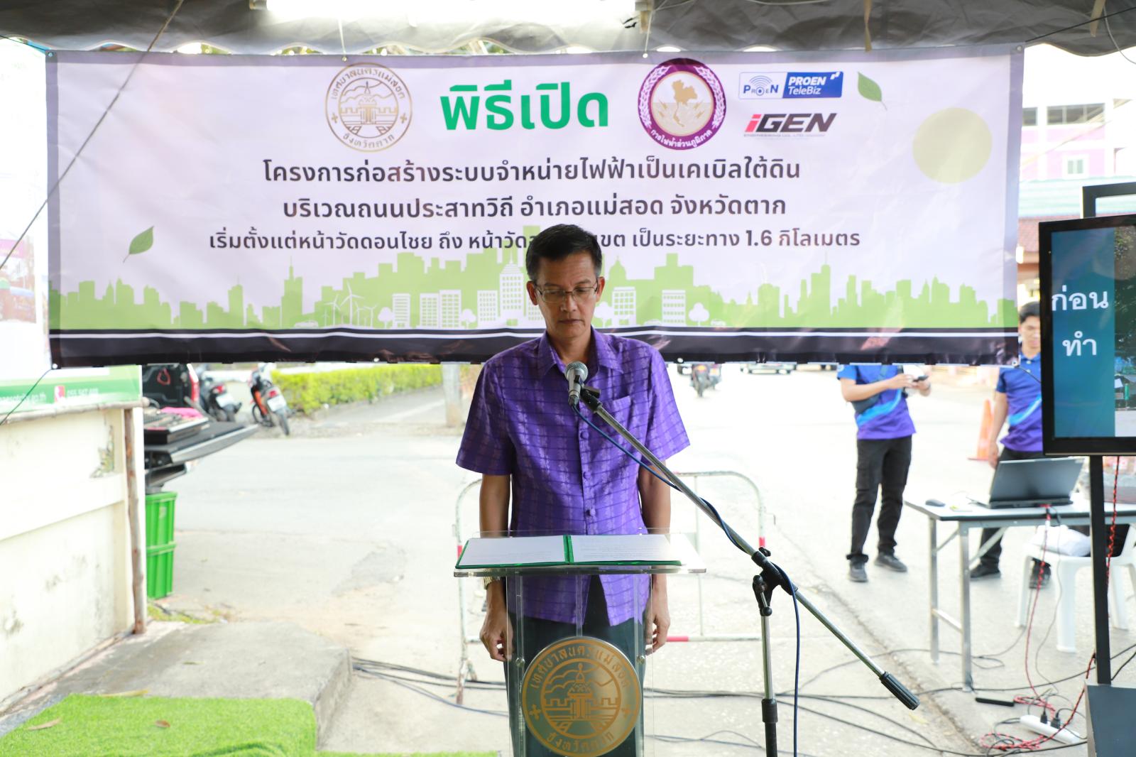 โดยมีนายสุรพล วงศ์สุขพิศาล รองผู้ว่าราชการจังหวัดตาก เป็นประธานพิธีเปิดโครงการก่อสร้างระบบจำหน่ายไฟฟ้าเป็นเคเบิลใต้ดิน บริเวณถนนประสาทวิถี เริ่มตั้งแต่หน้าวัดดอนไชย ถึง หน้าวัดอรัญญเขต เป็นระยะทาง 1.6 กิโลเมตร โดยโครงการดังกล่าวเป็นความร่วมมือระหว่างเทศบาลนครแม่สอด ร่วมกับ การไฟฟ้าส่วนภูมิภาค โดยใช้งบประมาณ 178,800,000 บาท แบ่งเป็นงบประมาณของเทศบาลนครแม่สอด จำนวนเงิน 76,894,903.25 บาท และงบประมาณของการไฟฟ้าส่วนภูมิภาค จำนวนเงิน 102,950,096.78 บาท เริ่มต้นสัญญา พฤศจิกายน 2566 - กันยายน 2567 ระยะเวลาการก่อสร้าง 360 วัน หรือ 1 ปี เพื่อเสริมสร้างความมั่นคงด้านระบบไฟฟ้าและมีความปลอดภัย ควบคู่ไปกับทัศนียภาพที่สวยงาม เป็นเมืองที่ทันสมัย ส่งเสริมการท่องเที่ยวและเสริมสร้างความเจริญเติบโตทางเศรษฐกิจอย่างยั่งยืนต่อไป