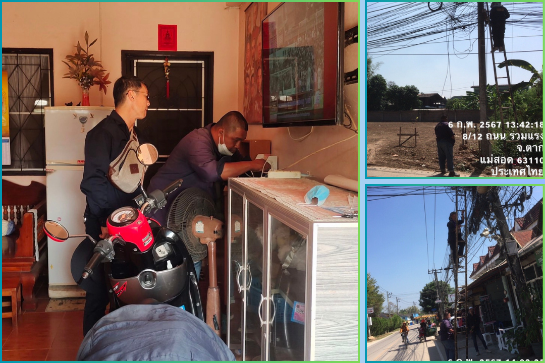ลงพื้นที่ดำเนินการซ่อมแซมเคเบิ้ลทีวีเพื่อการศึกษา ตามคำร้องขอซ่อมแซมเคเบิ้ลทีวีเทศบาลนครแม่สอด ในพื้นที่ชุมชนร่วมแรง เพื่อให้ประชาชนชุมชนดังกล่าวสามารถรับบริการเคเบิ้ลทีวีเพื่อการศึกษาได้ตามปกติ