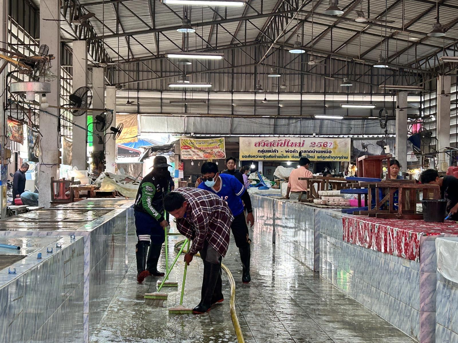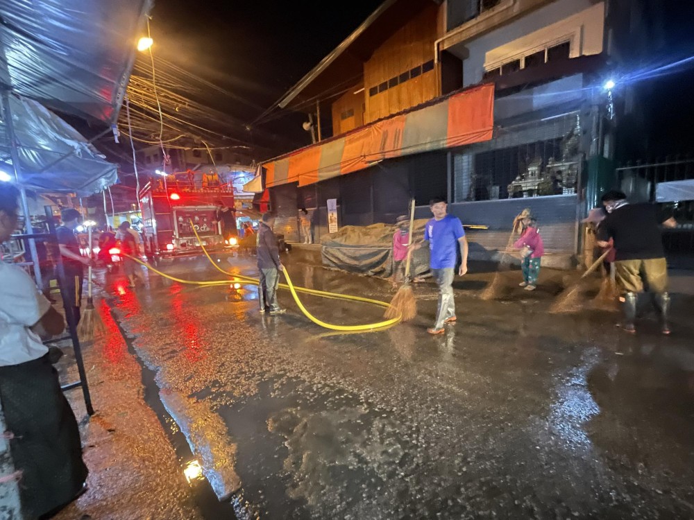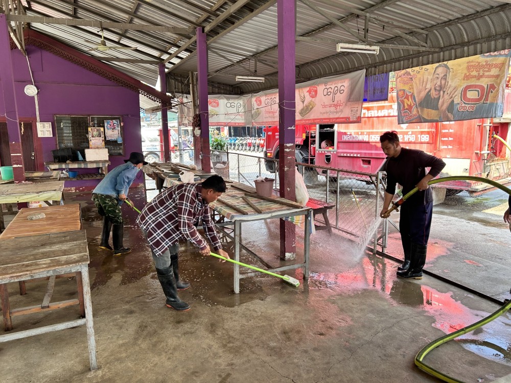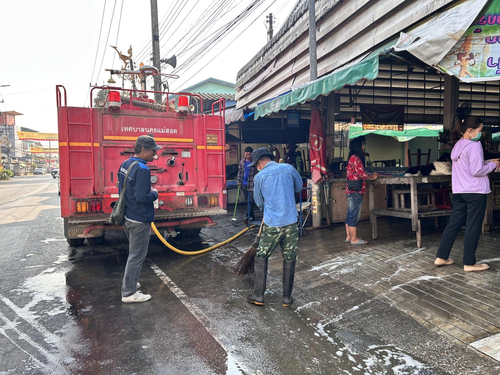 ว่าที่ร้อยตรี ประเสริฐ ปวงละคร นายกเทศมนตรีนครแม่สอด มอบหมายให้ นายสมเกียรติ สุริยา ที่ปรึกษานายกเทศมนตรีนครแม่สอด พร้อมด้วยสมาชิกสภาเทศบาล นำเจ้าหน้าที่กองสาธารณสุขและสิ่งแวดล้อม และเจ้าหน้าที่งานป้องกันและบรรเทาสาธารณภัย ลงพื้นที่ดำเนินการฉีดล้างทำความสะอาดตลาดสดบ้านเหนือ ตลาดประชารักษ์ และตลาดสดนครแม่สอด เพื่อความสะอาดและความเป็นระเบียบเรียบร้อยของตลาด